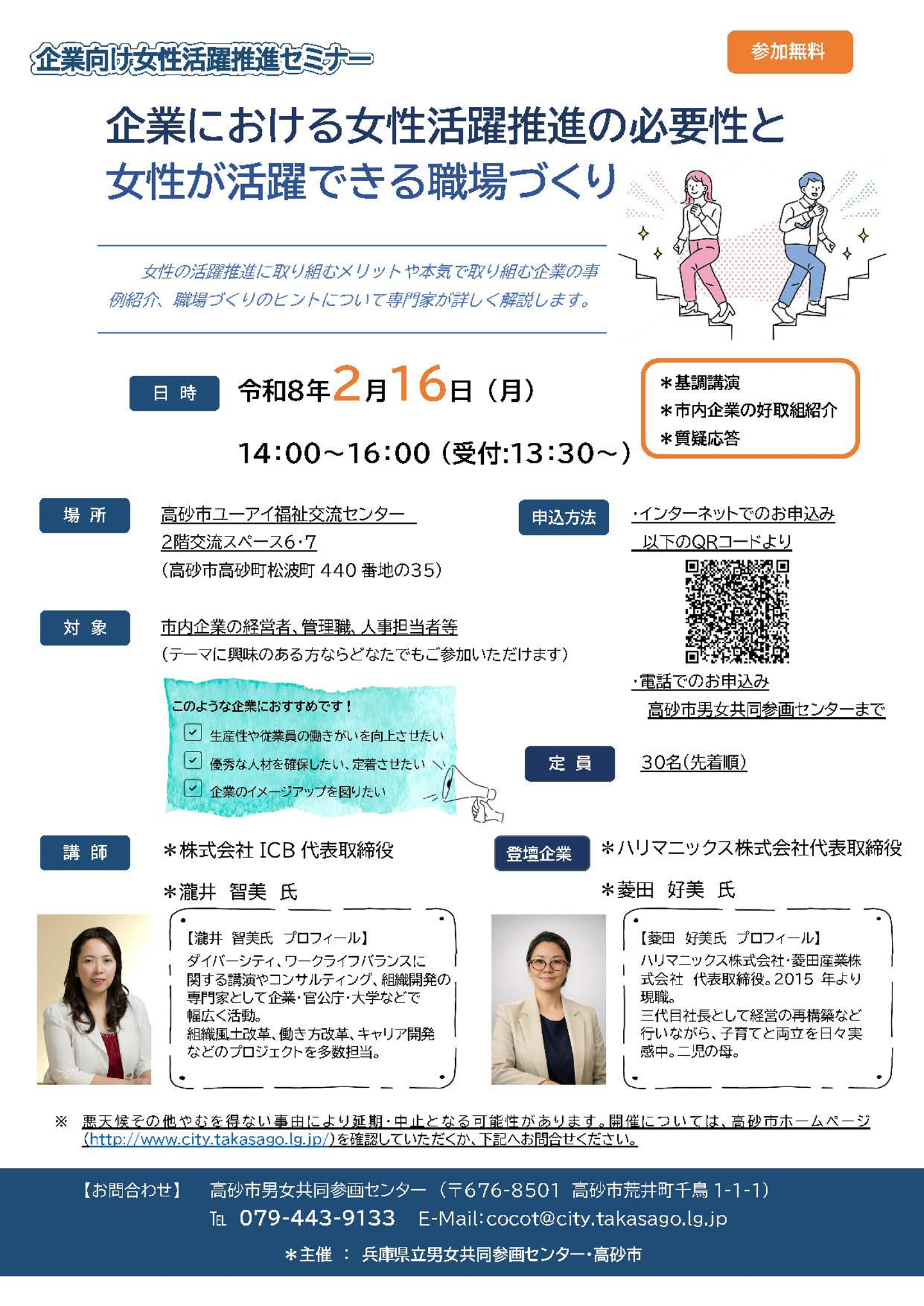 高砂市は、まだまだ企業内の女性活躍が進んでいないようなので、何かのお役に立てるなら有難い。