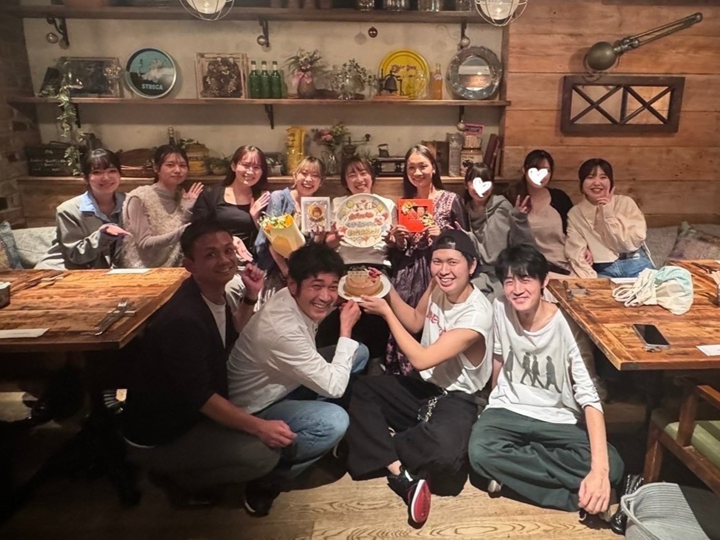 渋谷店シフトイン最終日、アルバイトさんがほぼ全員集まってくれて、お花やアルバム、似顔絵、プレートなどを用紙してくれて、みんながこんなに盛大に見送ってくれたことにとても感動しました。