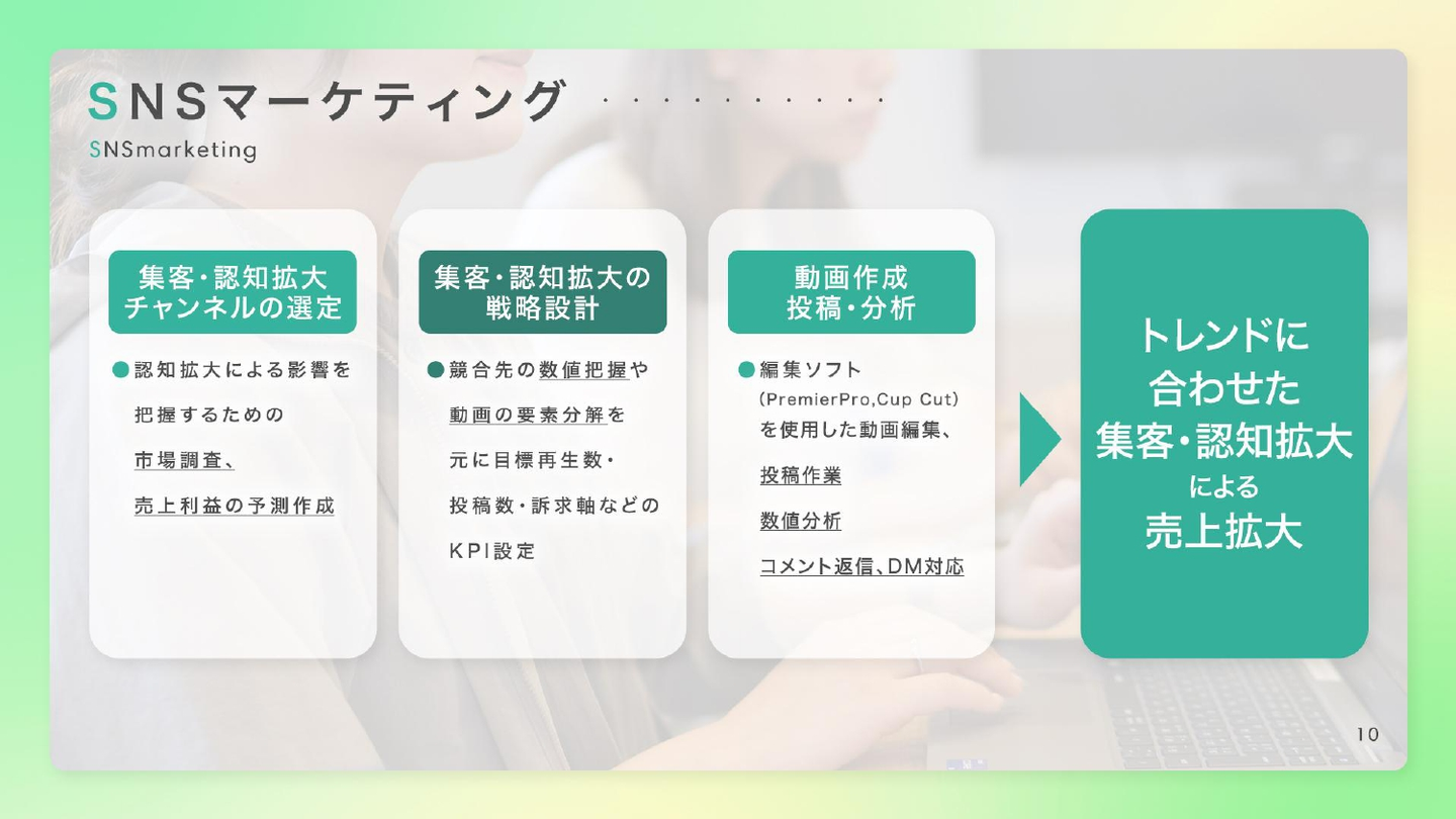 戦略立案から仮説検証まで一気通貫で実施できるため、トレンドを押さえたSNSマーケティングに関わることが可能です!