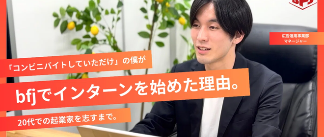 実際に、bfjでは学生ながら正社員として働き、上場企業等の大きな広告案件に向き合っている学生もいます。