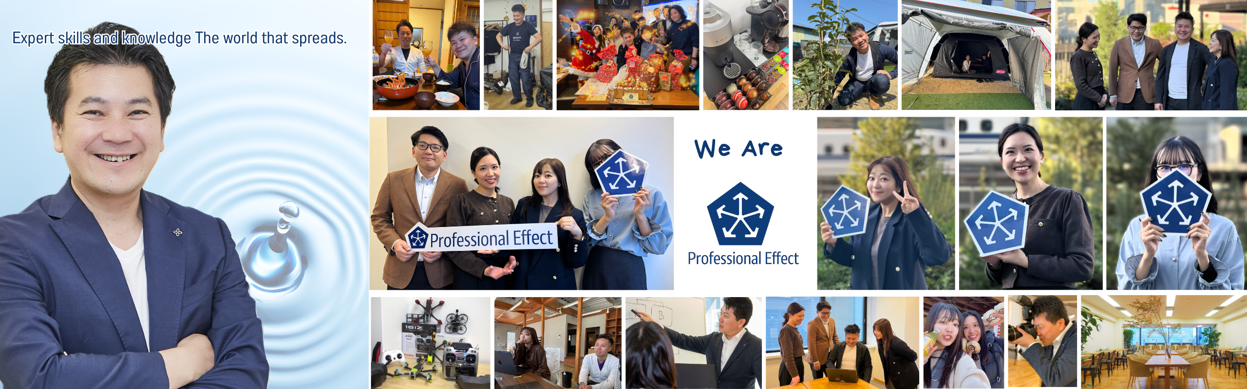 私たちが提供するサービスは、『知識』と『技能』の先にあるものです。 サービスを提供することで波紋が広がっていく、 その波紋を多く、大きくつくるために、プロフェッショナルエフェクトは誕生しました。