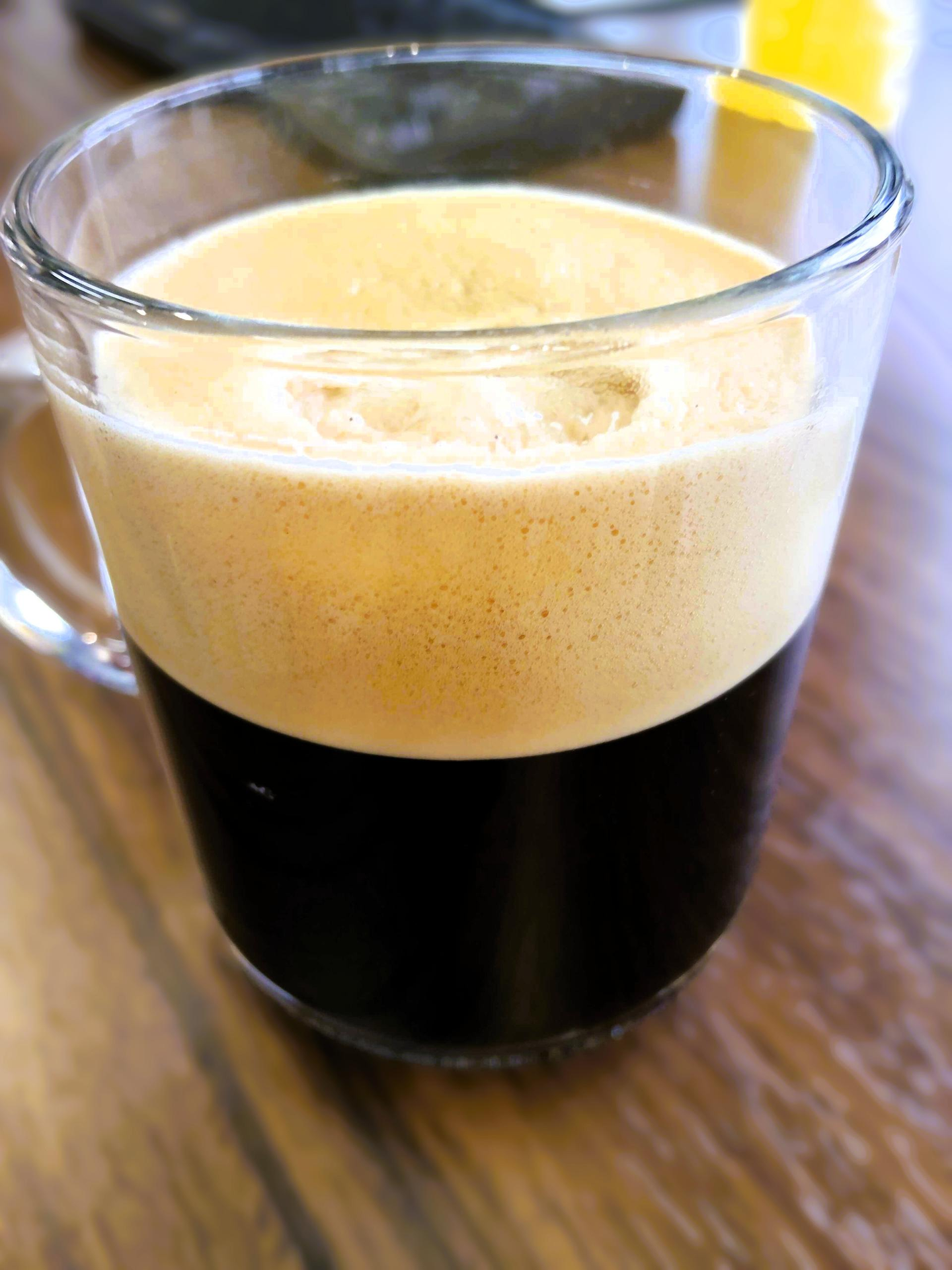 ロングブラックでしょうか、クレマとコーヒーの美しい二層コントラストが、