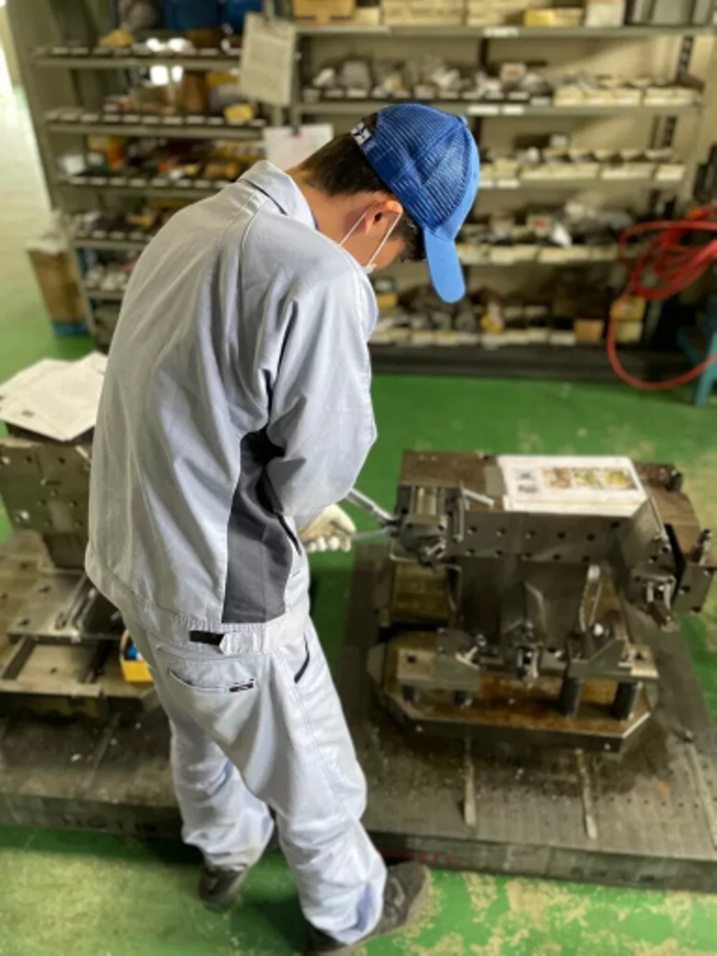 宮下です。2022年4月に新卒で入社しました。現在は、サービス部で治具の組み立てを担当しています。時折、客先を訪問して修理やメンテナンスをする出張案件もあります。