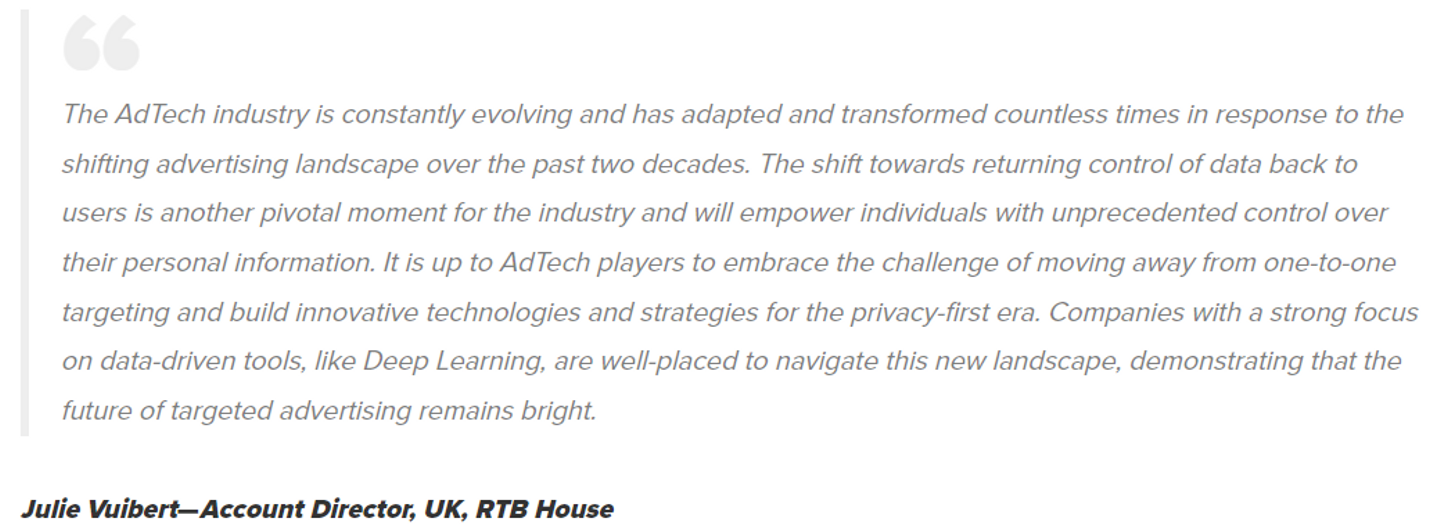 Despite the many benefits of personalized ads, there was a big downside: user privacy. Data collection became too pervasive, and customers became increasingly concerned about the lack of transparency surrounding its use. These concerns define the modern targeted advertising landscape. This led to the Google initiative Privacy Sandbox, and the development of more privacy-friendly targeted advertising techniques, in close collaboration with companies like us here at RTB House.