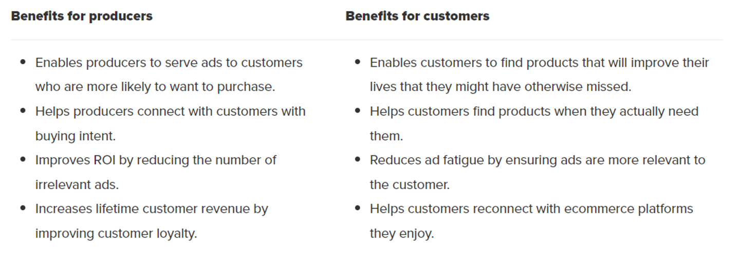 Targeted advertising benefits both producers and consumers. From the producer side, it helps them reduce the costs associated with advertising campaigns by only serving ads to people who are actually interested in their product. Additional savings can be made through the use of personalized ads, which help to improve the overall ROI of a campaign. This means that companies can sell more for less money.