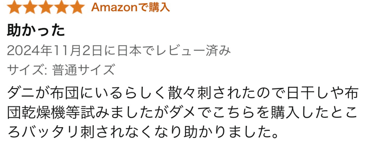 ーレビューからも、ダニに悩まされていた多くの方に喜ばれているのが分かります・・・!