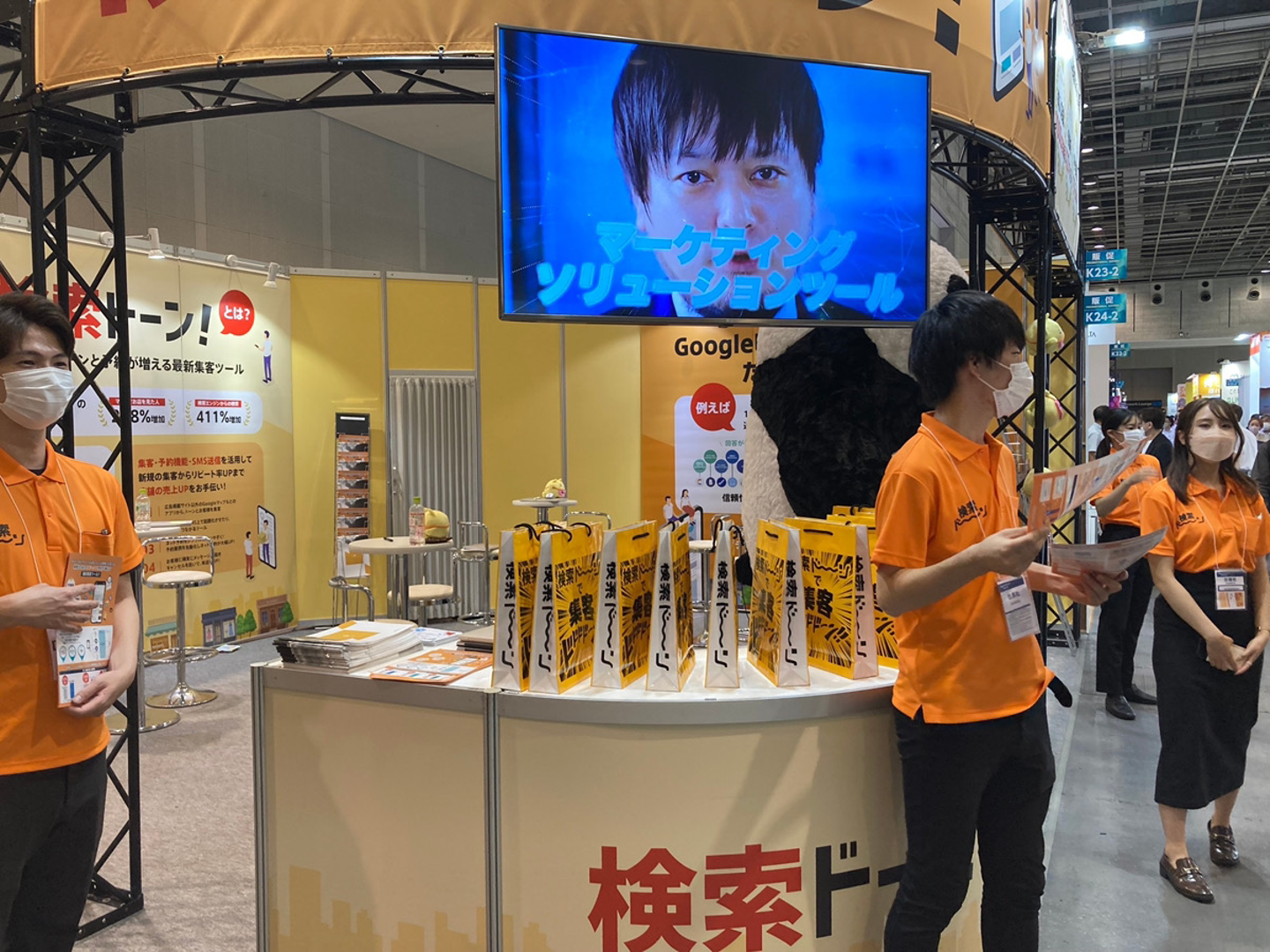 ブース前では、パンダと一緒にお客様をお迎えしてます♪
