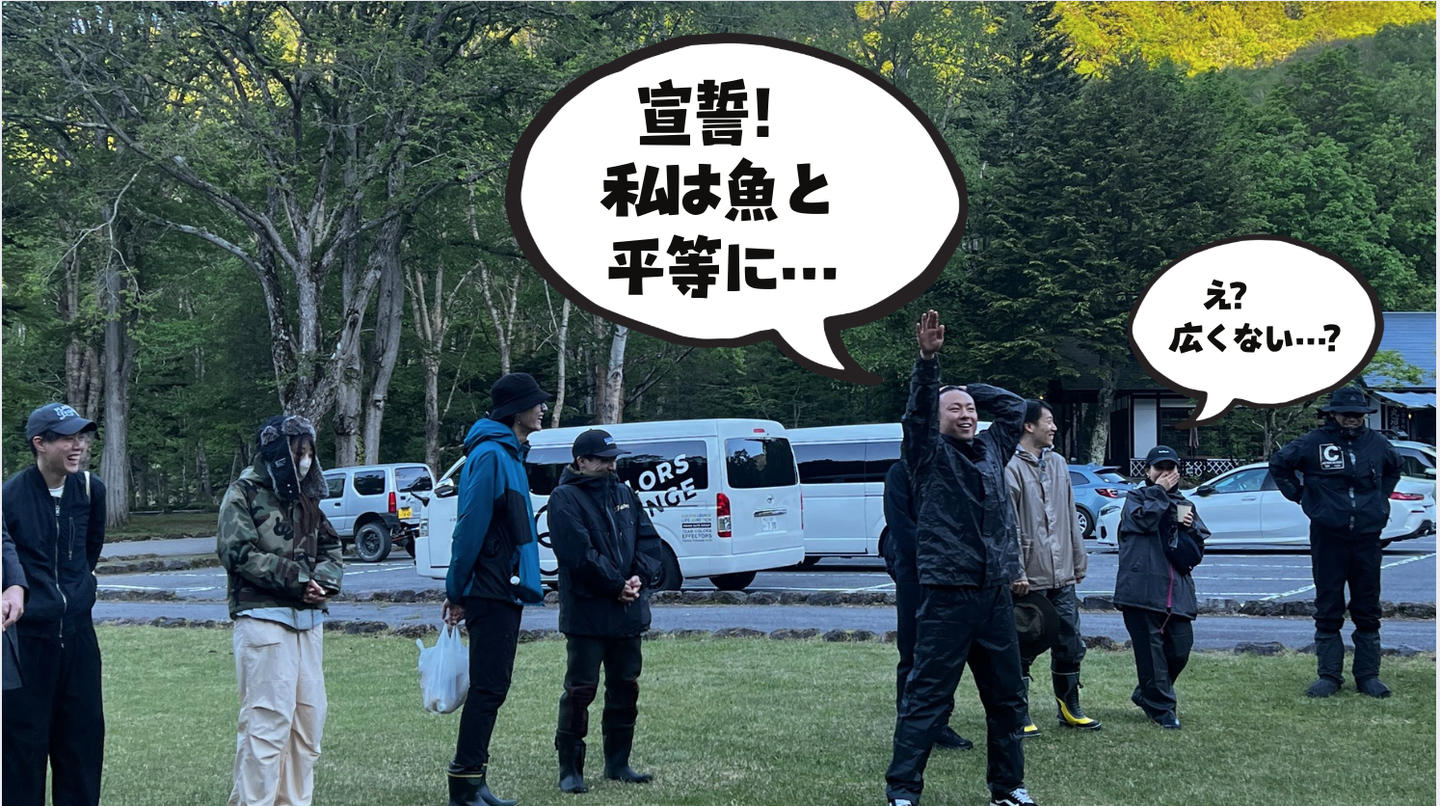さあ、釣り道具の準備が整ったら開会式から始めましょう!