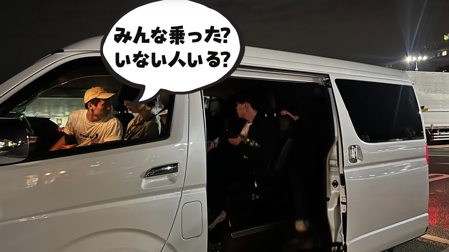 みんな仕事終わりにAGMSに乗り込んで出発!