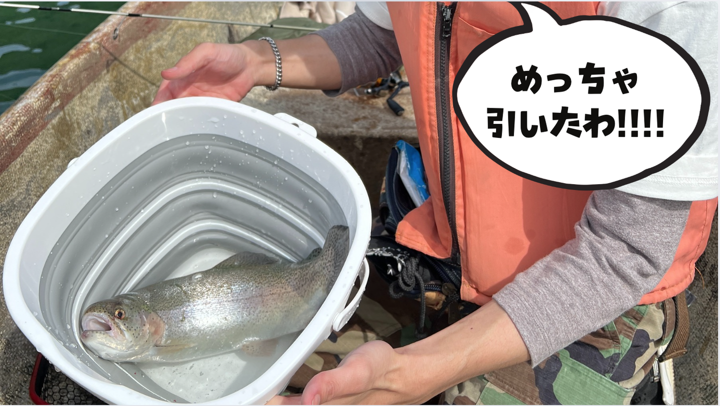 釣り経験者のヤスキが42センチの虹鱒を釣り上げました!さすが元海洋大学!