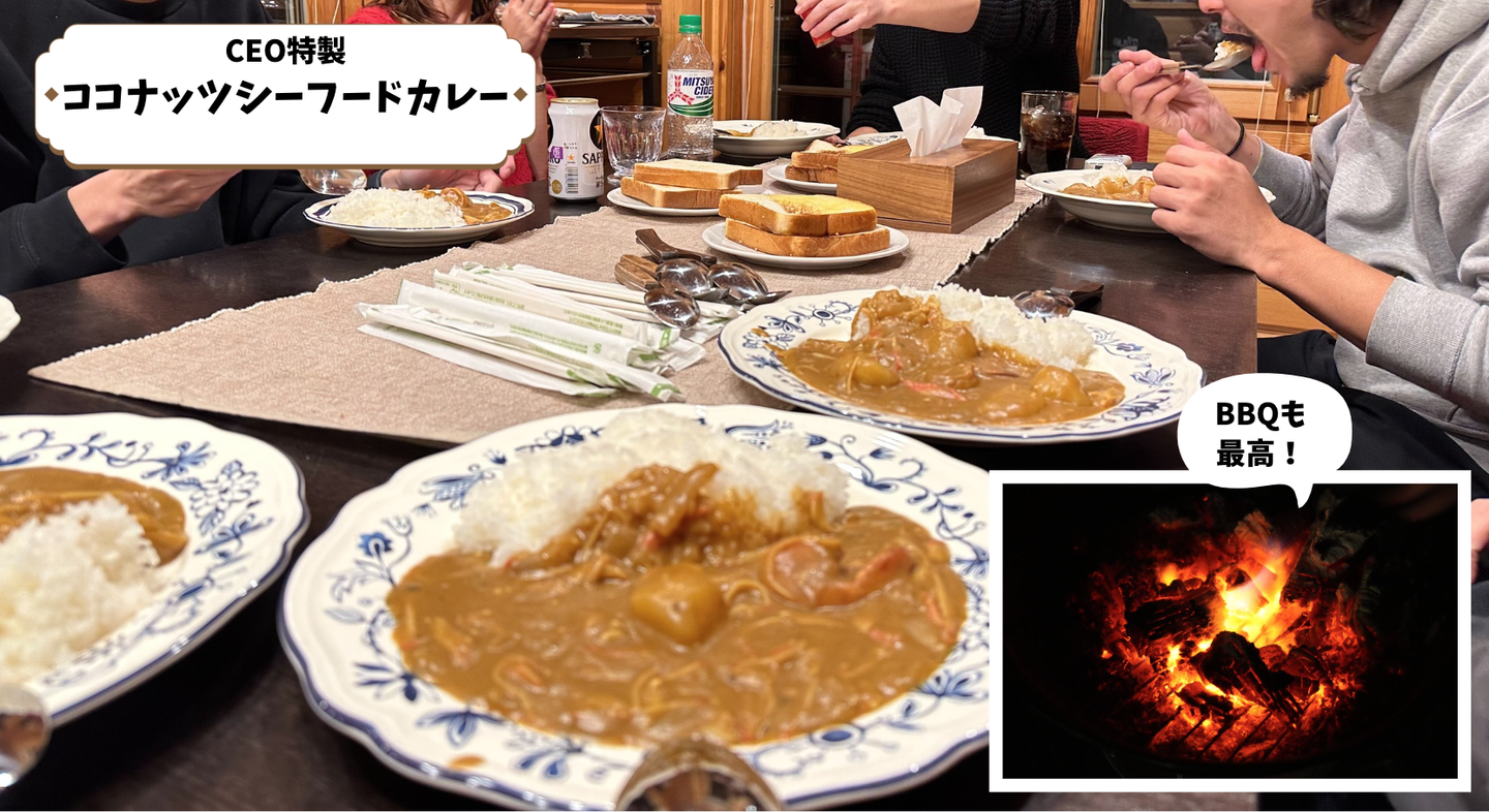 夜はカレーとBBQということで、CEOは特製カレーを準備します。