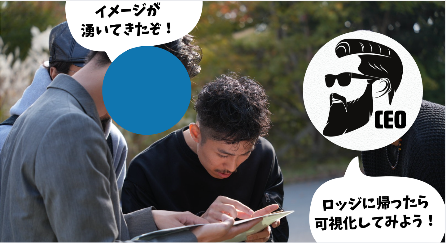 こちらは一足先にロッジについて、コンテンツ企画と改善の会議をしているようです・・・?