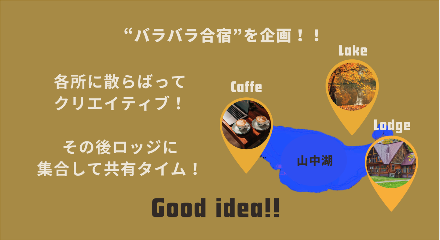 ー今回は、毎月1回開催されるクリエイティブ合宿についての特集です。全員が行ける訳ではなく、条件を達成したメンバーのみが参加できる合宿で、参加者はオフィスを飛び出し、それぞれのクリエイティブを爆発させます。
