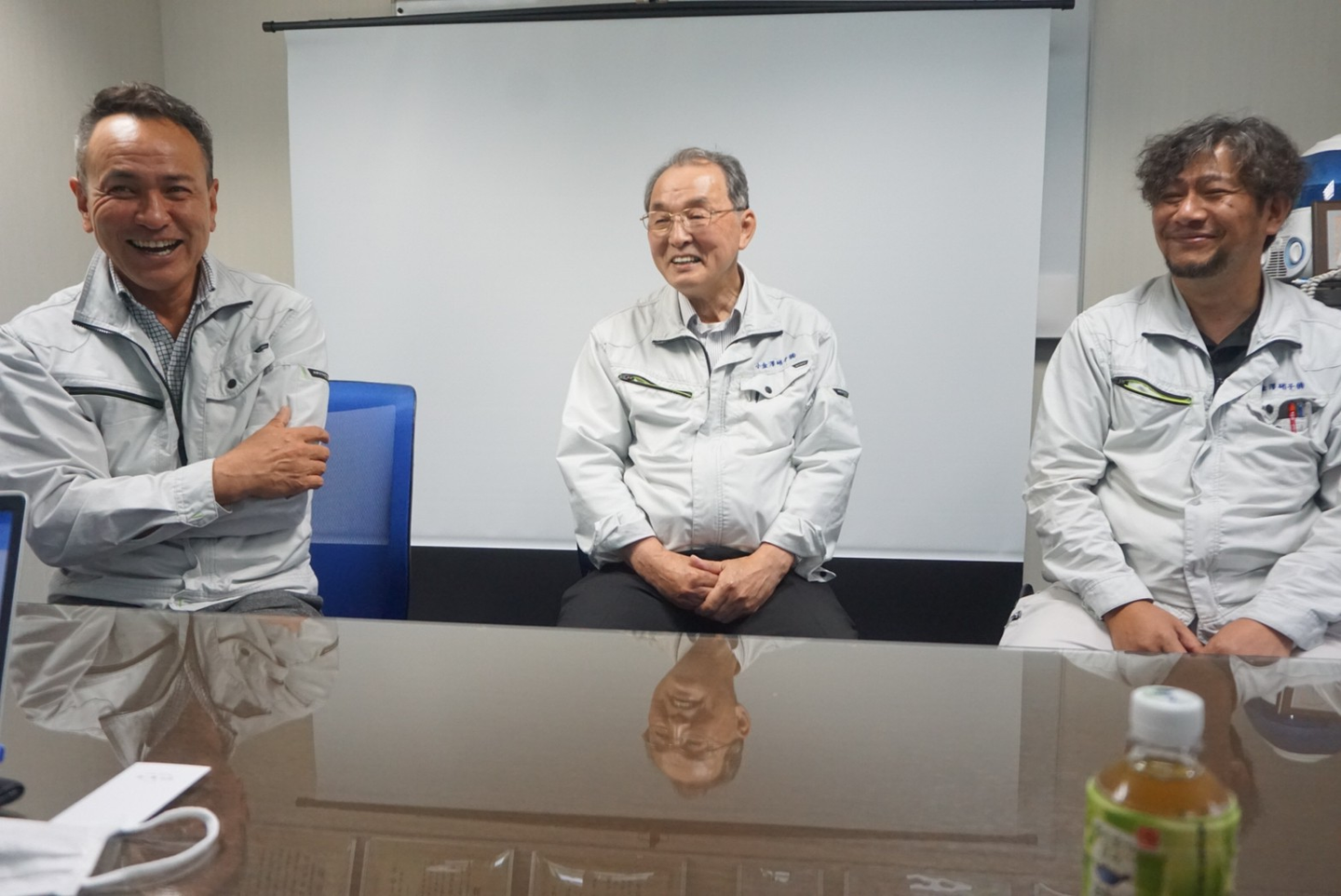 ▲南島さんの心強い発言に喜ばれる社長と、安心した表情の益雄さん