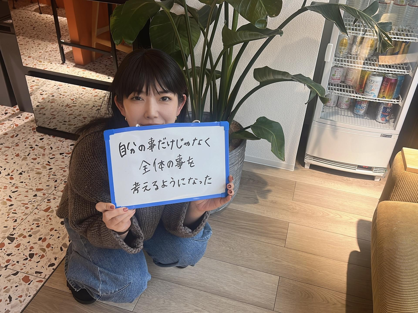 今までは自分以外の発言や行動に賛同することが多かったが、採用、イベント、環境整備など意見を出せば聞いてくれる環境なので発言する機会が増えました。
