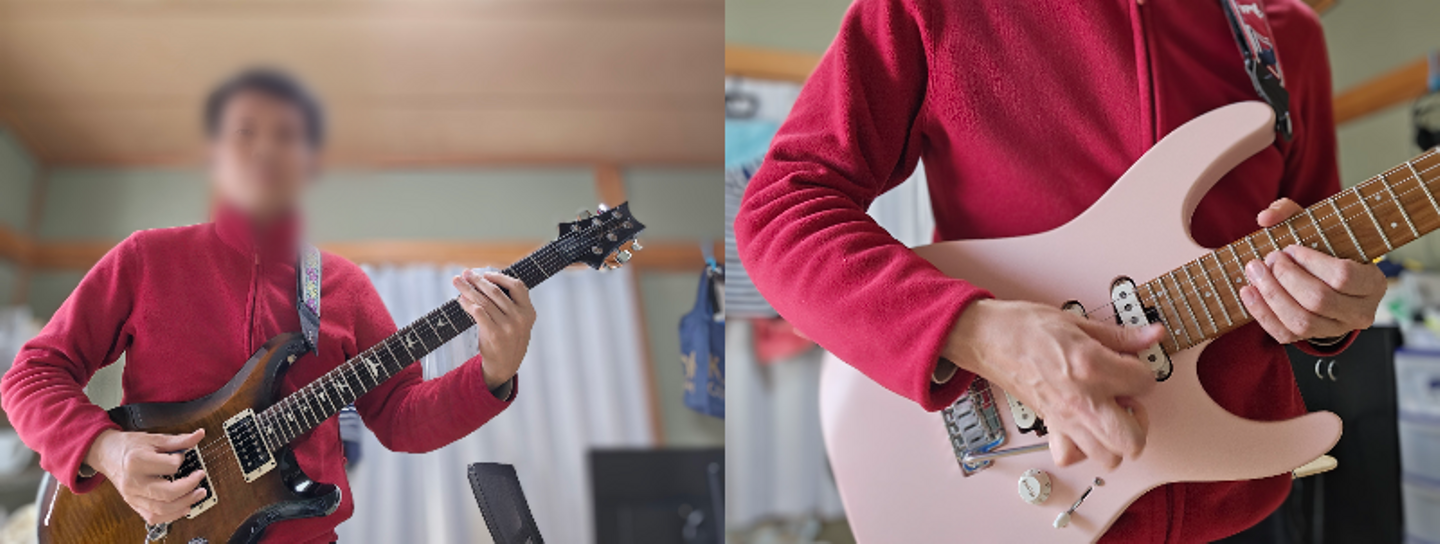 (🎤:左のエレキの指板シール、よく見ると鳥なんですね🐦 ピンクのエレキもすごく可愛いです🎸)