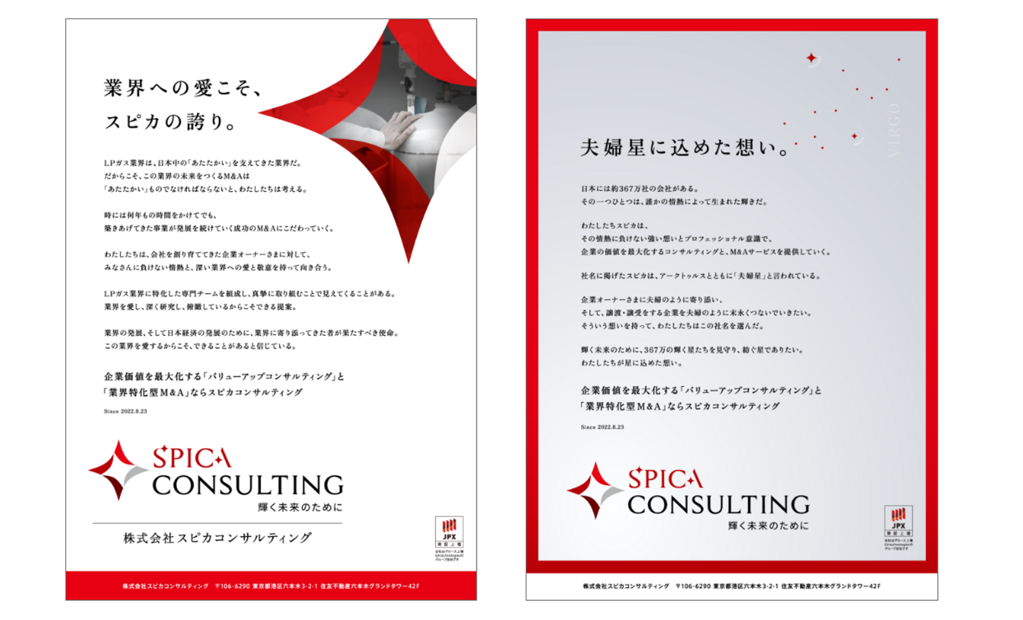 「スピカ」は乙女座の一等星で、春の到来を象徴する「春の夫婦星(めおとぼし)」と呼ばれています。M&Aはよく縁談に例えられることから、企業の企業の夫婦星になるよう「スピカコンサルティング」と命名しました。
