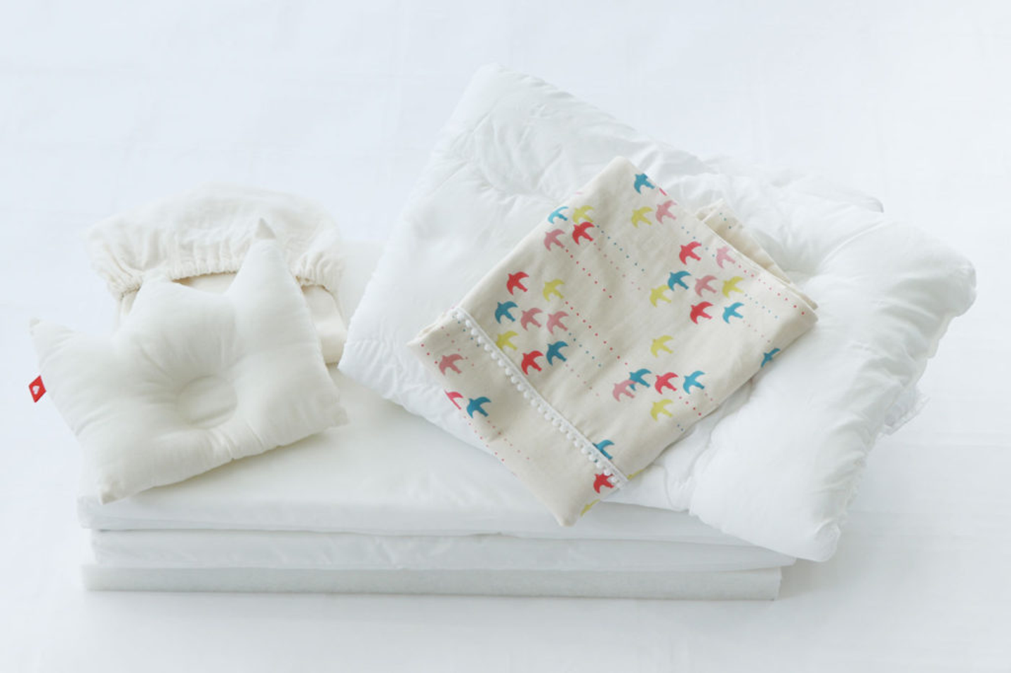 1人目の時は生後1ヶ月以降は添い寝だったので結局布団は使わず。 冬の時期に上布団を使うだけなので、数点セットはいらないかも。枕付きもあるが、まず使わない。
