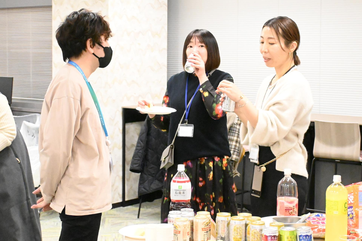 納会は最終日の業務終了後にフリースペースを利用して開催されました。社員の多くはリモートワークのため、初の試みにあたり準備の担当者は「10名くらい参加してくれたらうれしいですね」と語っていました。