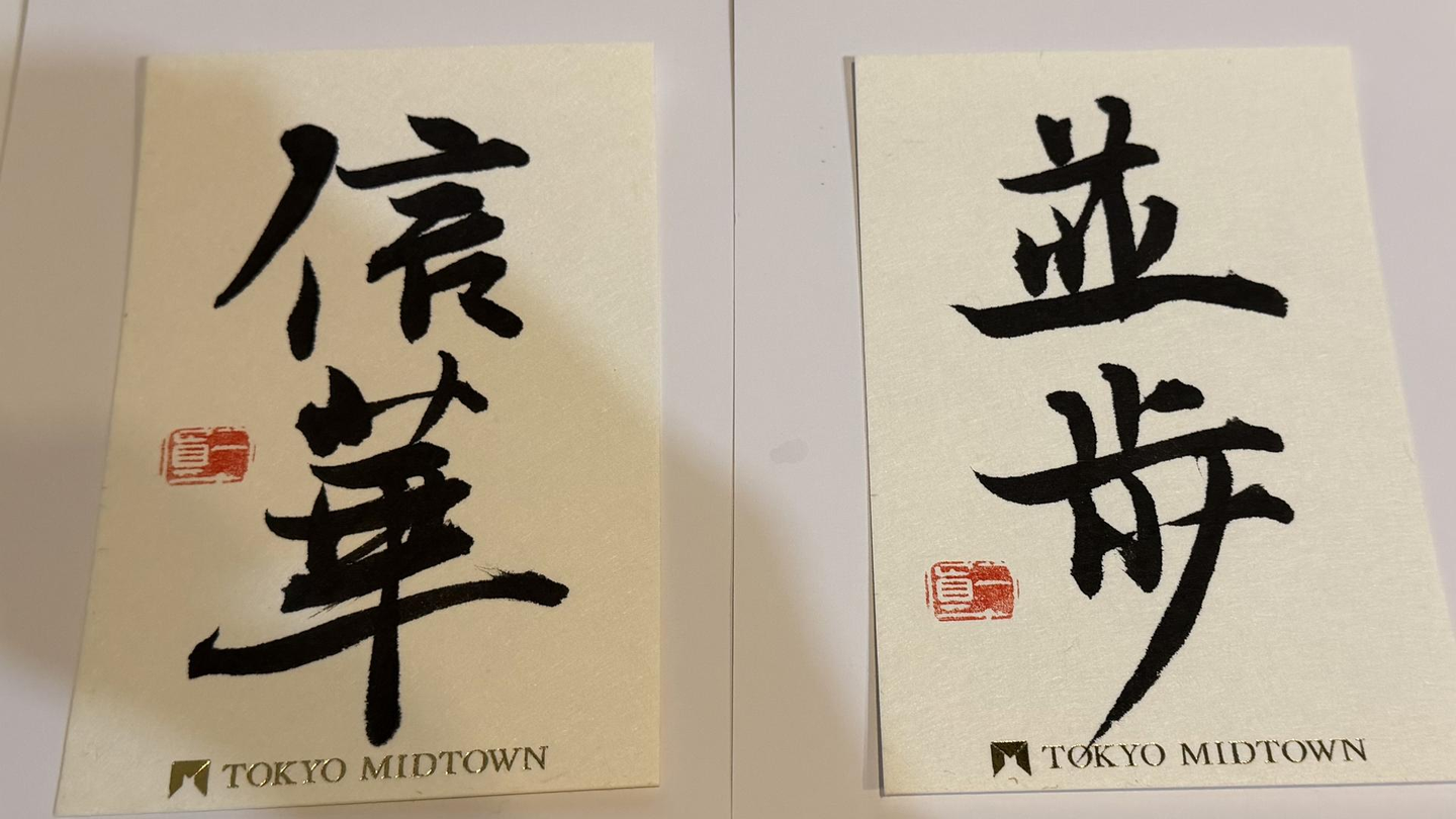 東京ミッドタウンで開催された、書道家さんによる年賀状の書き初めイベントに参加。