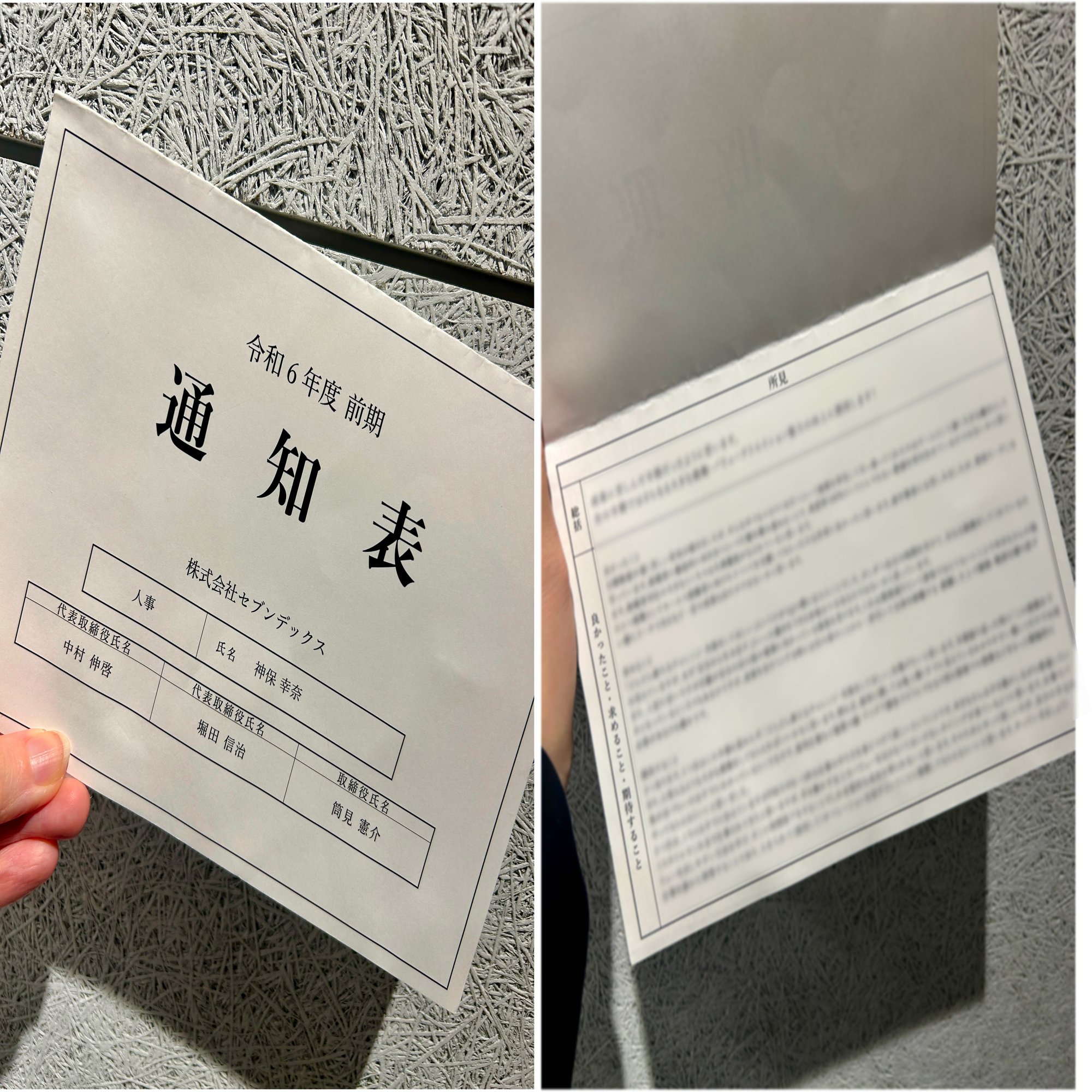 上記の人事評価面談に加え、マネジメントからメンバーに対し、定性的評価を「セブンデックス通知表」に記載し、配布しています。