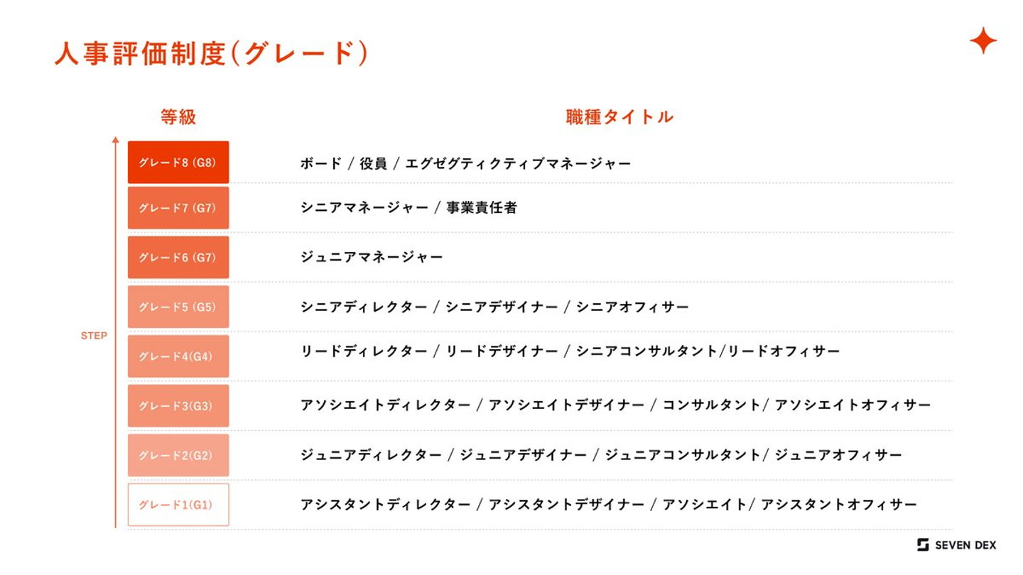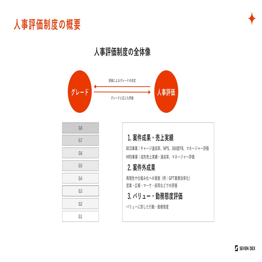 セブンデックスでは「この会社が目指すところ(ビジョン)を体現する制度であること」の考えのもと、人事評価制度を設計しています。
