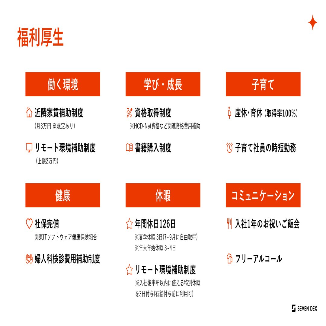 福利厚生は、長く働く上で生活や働きやすさを支える制度であると同時に、組織や会社が目指す方向性や価値観が表れるものだと、セブンデックスでは考えています。