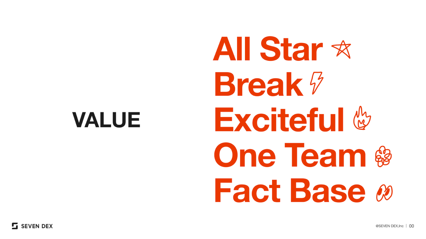 セブンデックスは、ブランド戦略からクリエイティブ制作まで一気通貫で支援する「ビジネス・クリエイティブ・スタジオ事業(BCS)」を展開しています。戦略を描くだけではなく実際に「コトを動かす」ために、スキルやノウハウだけではなく、自社のカルチャーづくりにも力を入れています。