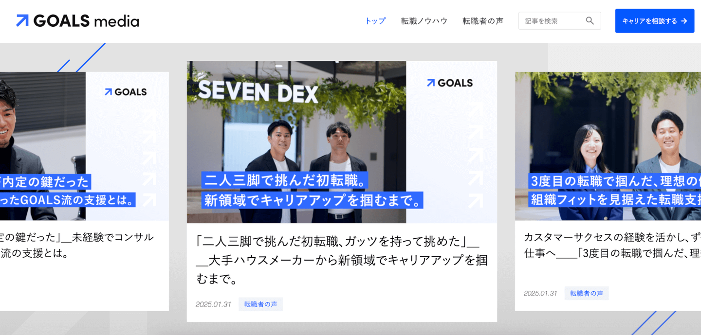 ▲HRソリューション事業部が提供する「GOALS(ゴールズ)」のメディアでは転職者との対談を公開中