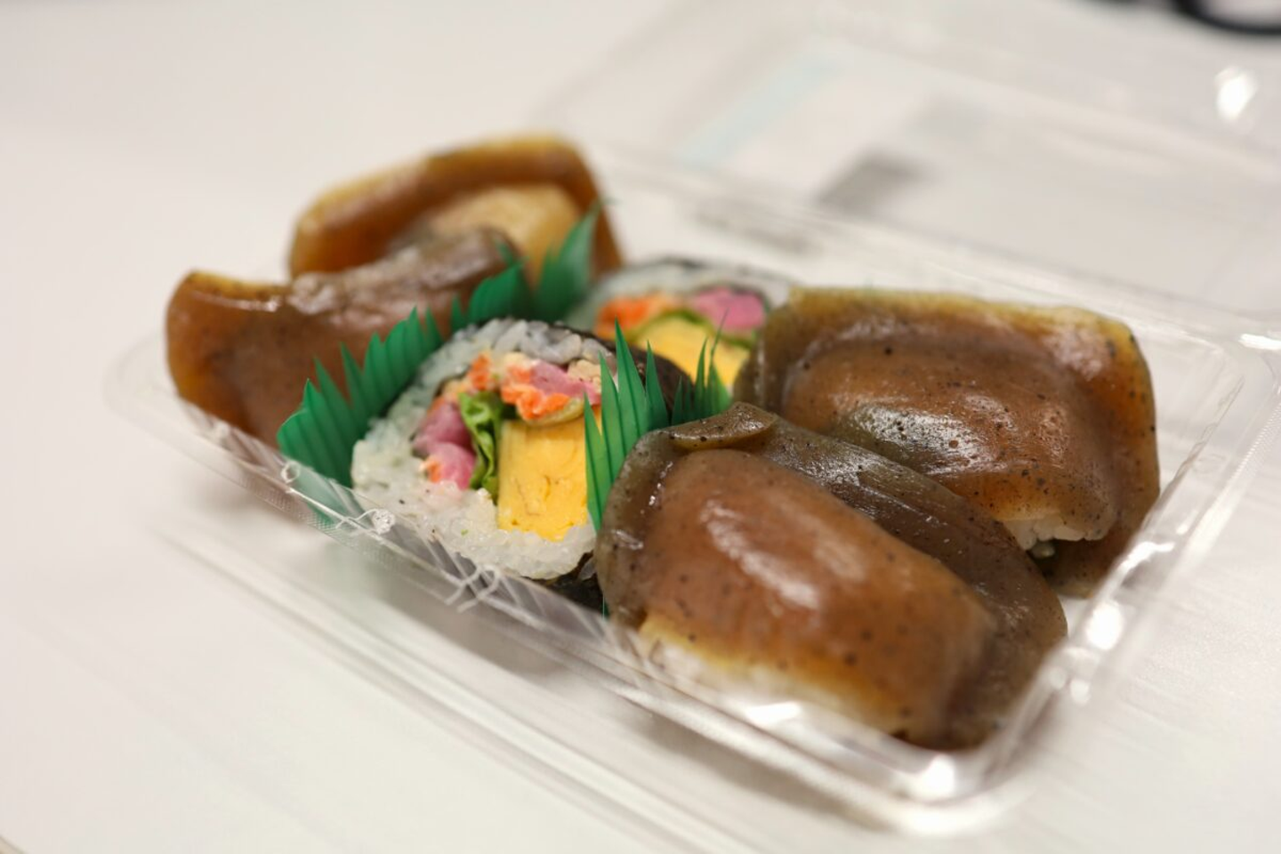イチオシは「こんにゃく寿司」です!アクセントのしそとワサビの効いたツルッとした喉越しが癖になります。※ほとんど午前中で売り切れてしまう大人気商品!