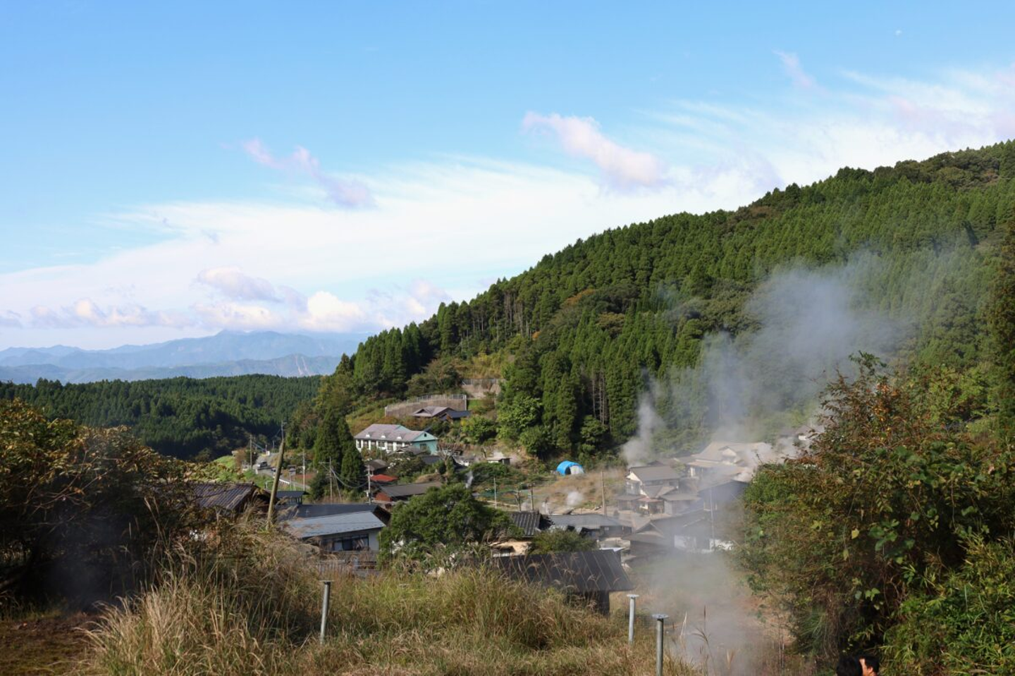 蒸気が常時立ち上り、分湯設備や還元井等が集落の中にも設置されています。