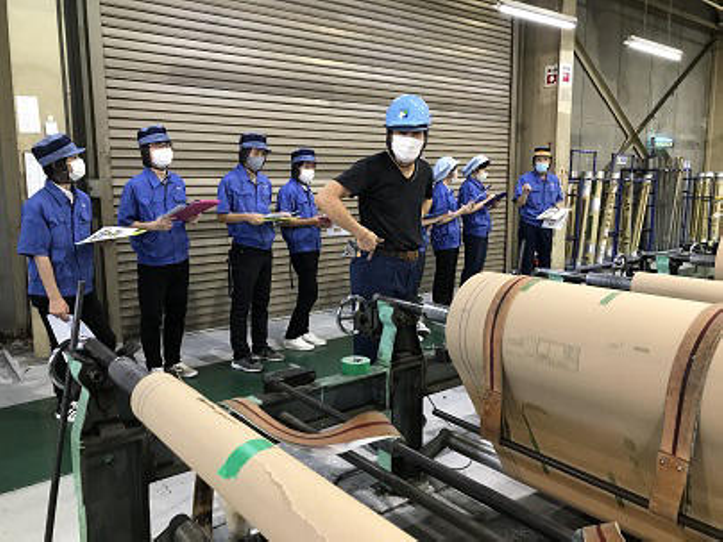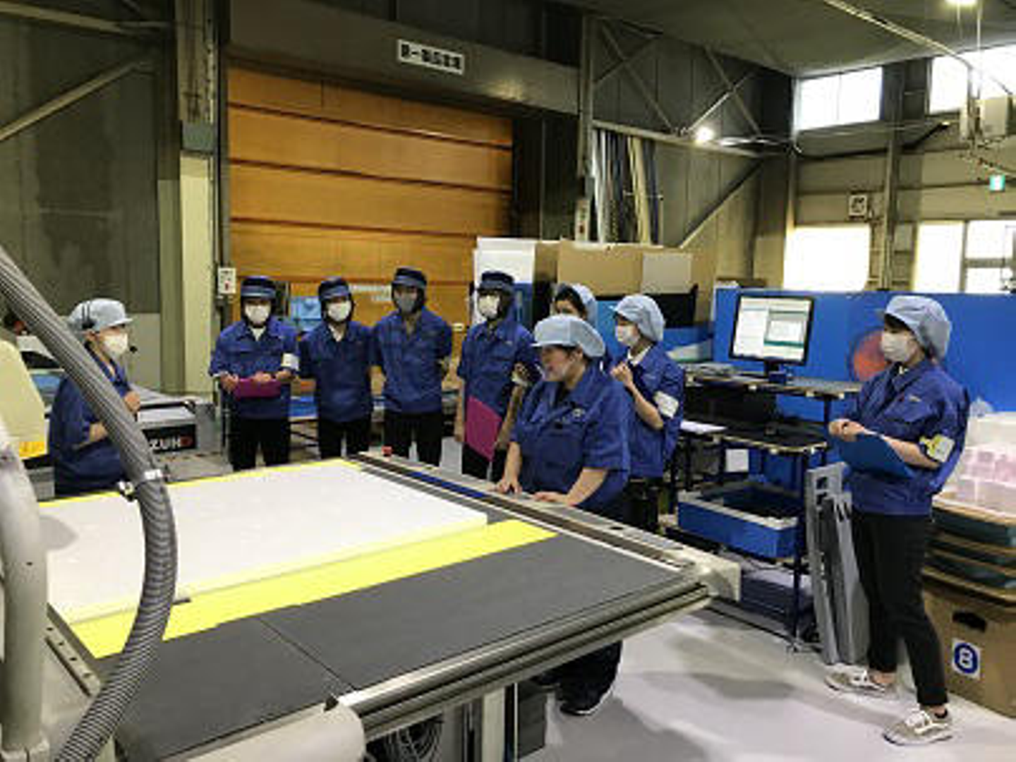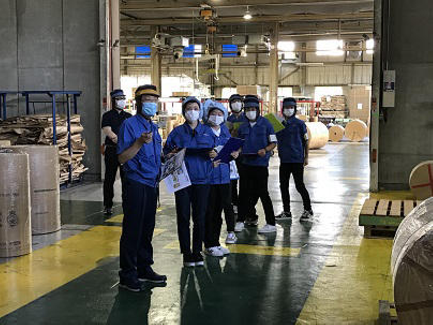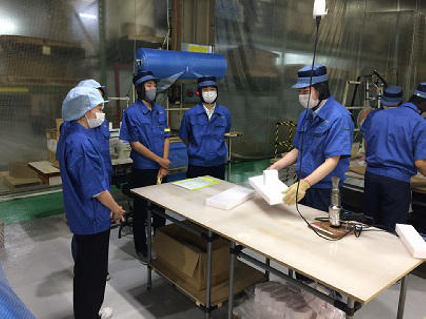 工場見学ではクラフト紙袋の生産工程や緩衝材などの組み立てを行う包装加工課、真空成型工場にお邪魔しました。