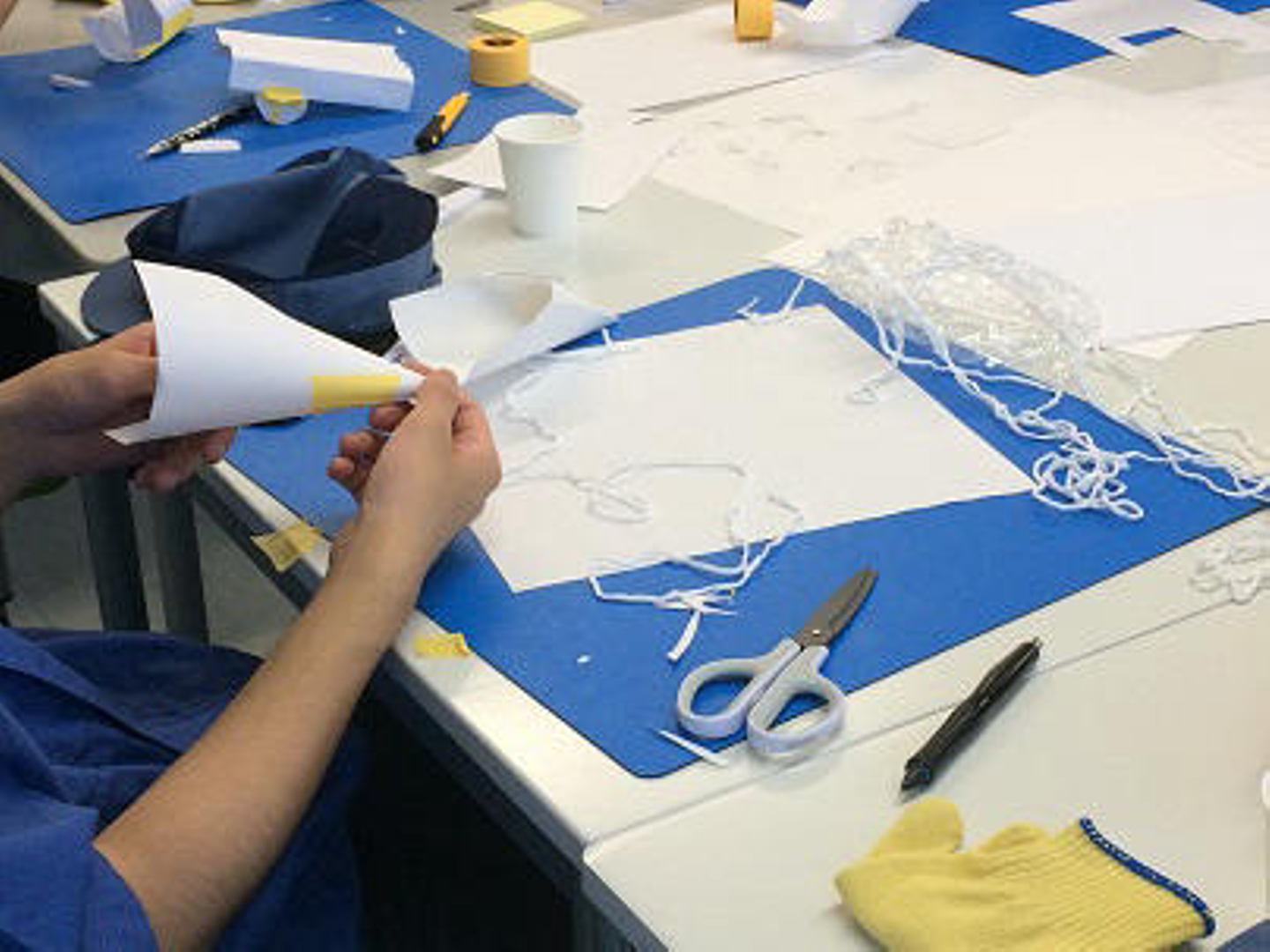 Aチーム、Bチームに分かれて、それぞれマスクを作っていきます。