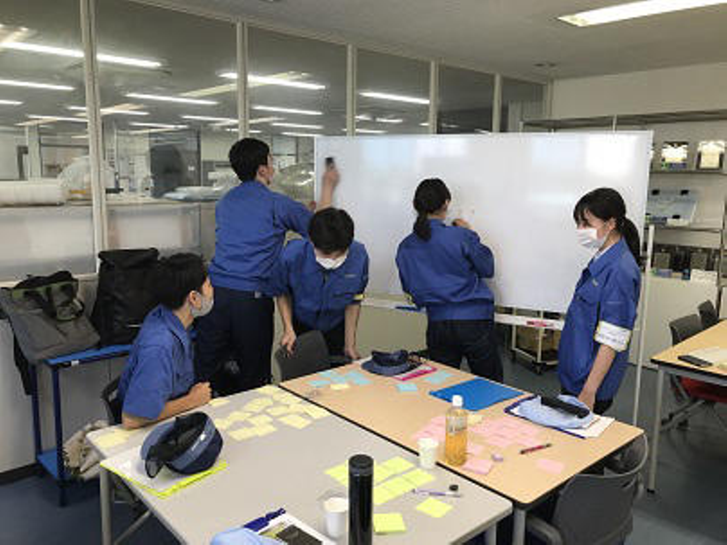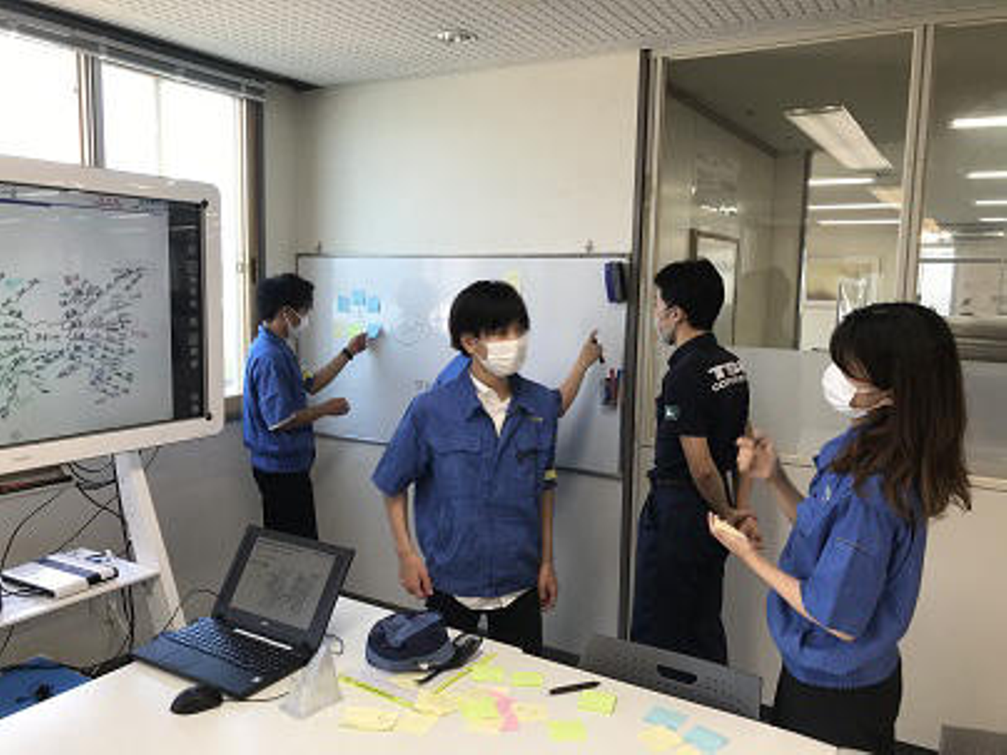 技術部や業務管理課の若手社員も加わって、学生さんの意見をまとめたり、アドバイスをもらったりしました。