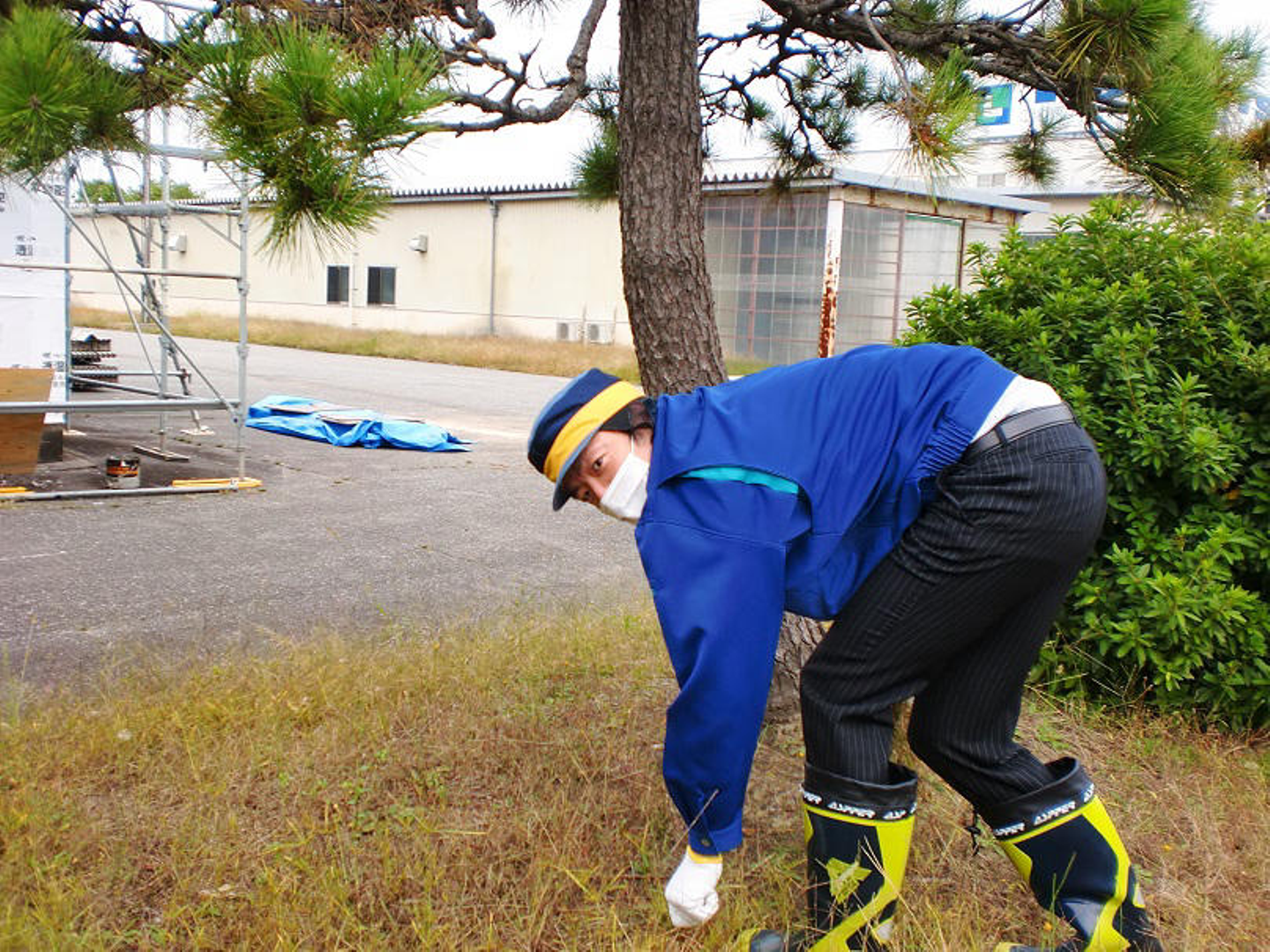 専務もバリバリ草むしり中です。不意打ちに近い形ですがパシャリ(笑)