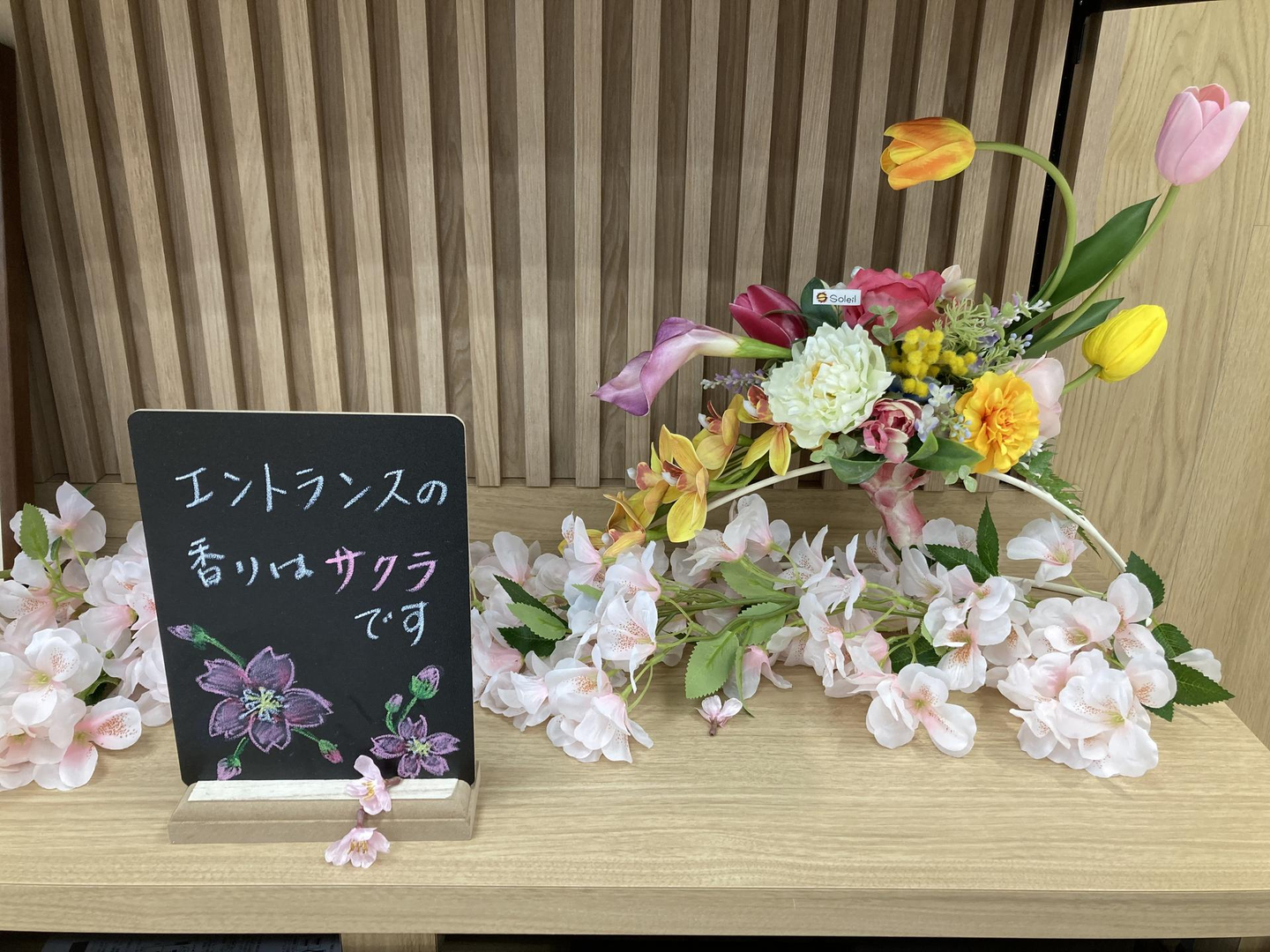 また、最近はアロマフレグランスも導入しました。季節ごとのテーマに合った香りにしております。今のエントランスは桜の香りがしますよ!
