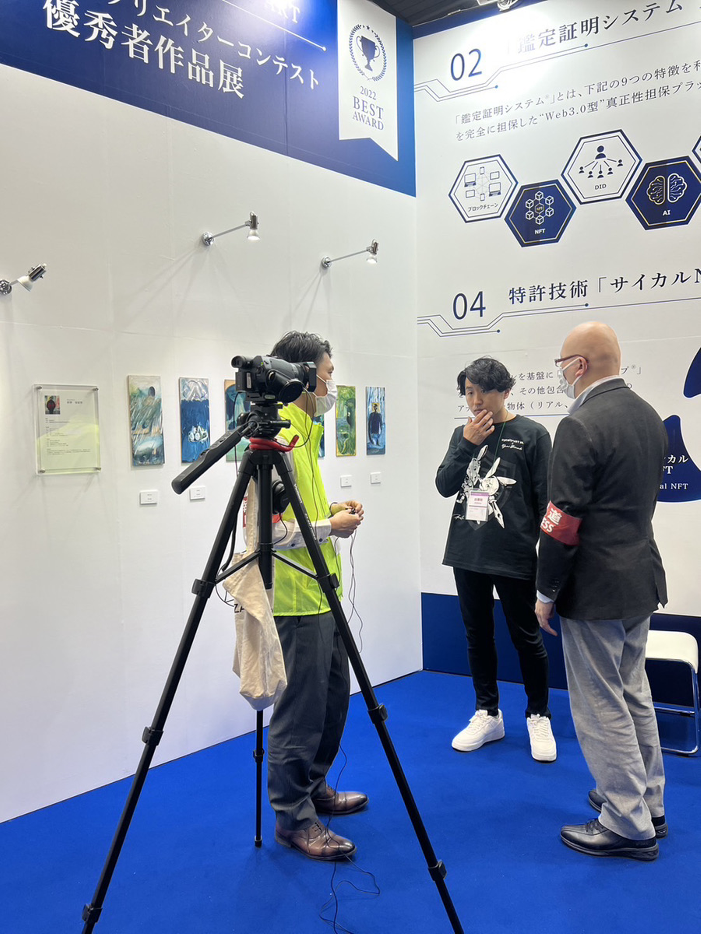 EXPOでは弊社メンバーが接客、顧客対応させていただきました。たくさんの人に足を運んでいただく中、弊社事業「鑑定証明システム®」のデモンストレーション、動画配信、ちょっとしたイベント企画も行いました。