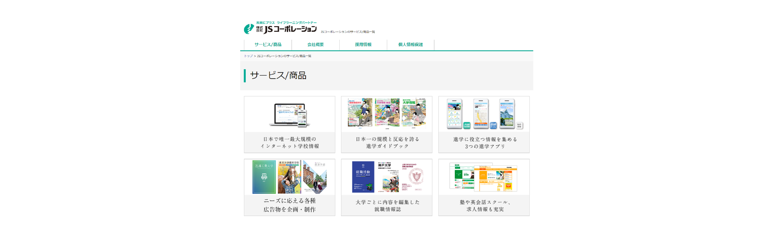 「広告×教育」で、高校生と大学・専門学校の架け橋に。 JSコーポレーション(代表:米田英一)は、国内最大級の「進学情報メディア」を企画し、運営および発行をしている広告・出版会社です。時代に応じた様々なサービスも展開しています。