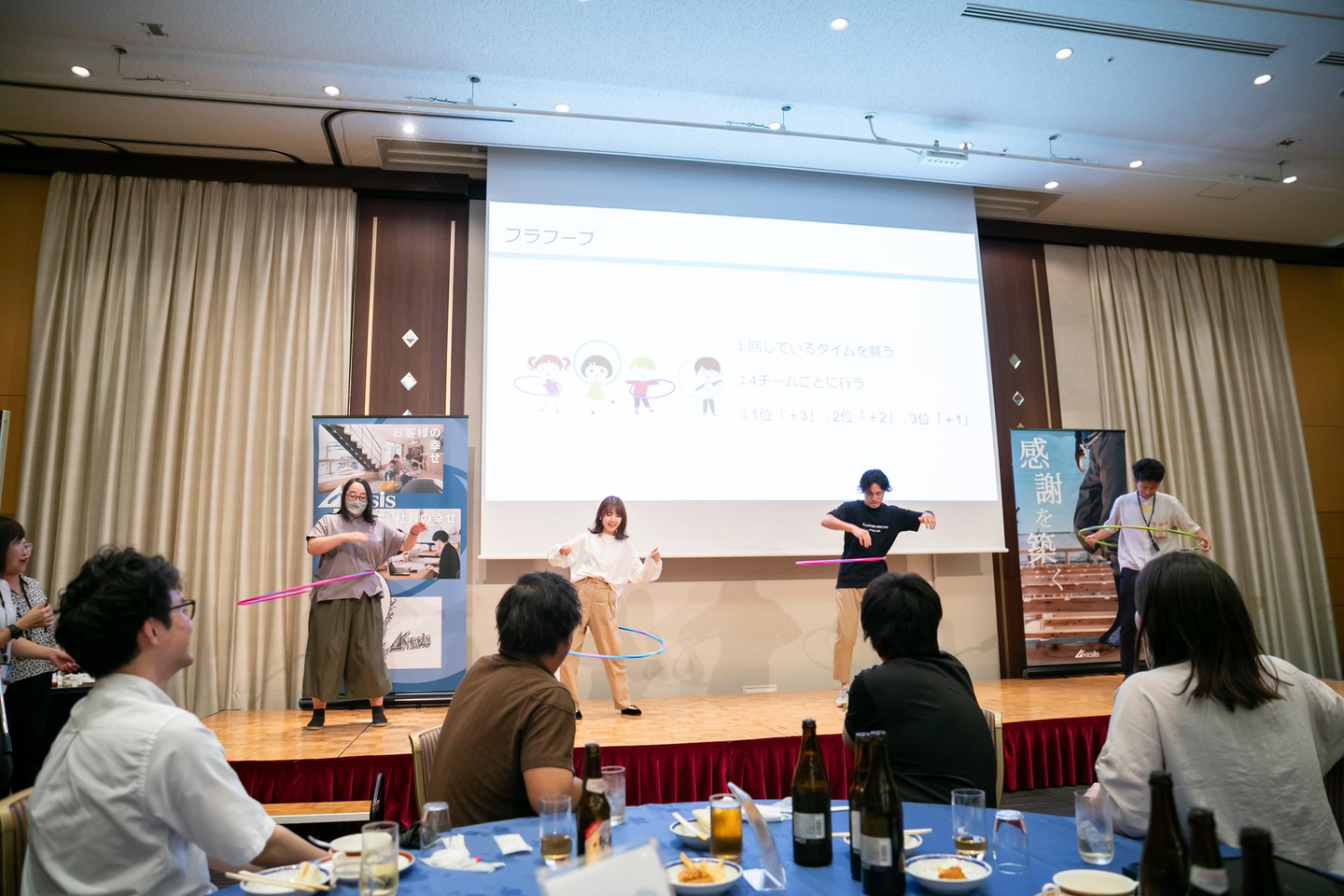 社員クイズやフラフープなどのレクリエーションもあり、普段話さない社員との交流もできました。