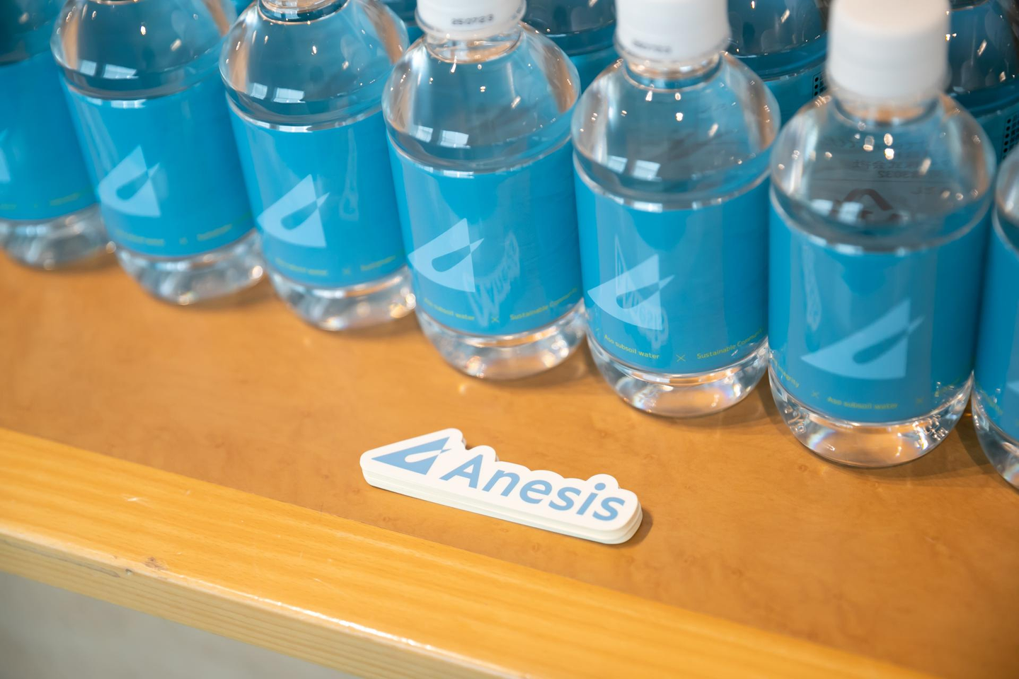 All Handsの開催にあたり新調した、アネシスウォーターとステッカーのノベルティ。ノベルティもイベントを盛り上げるコンテンツの1つです。