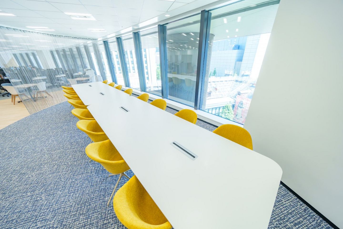 開放的で執務スペースからもよく見える、そして席数も多いので