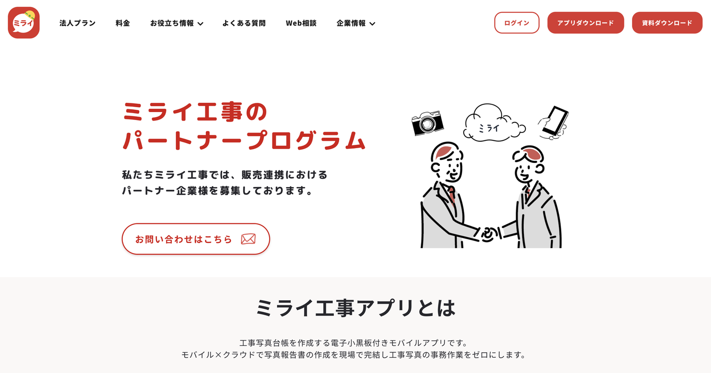 私たちの会社が運営しているのは、"ミライ工事" という現場の書類作成を効率化するようなアプリケーションです。