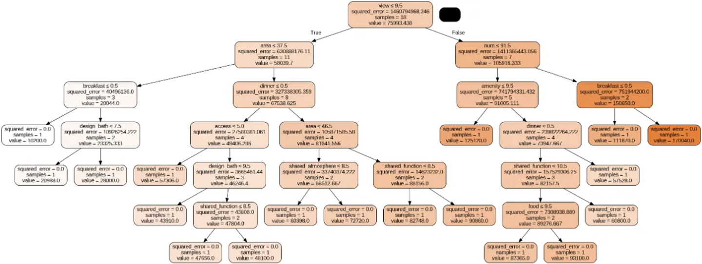 決定木とは、データを分割していくことで、目的変数を予測するモデルです。ランダムフォレストでは、データの一部をランダムに選択して複数の決定木を作成し、それらの予測結果を平均化することで最終的な予測を行います。この手法により、単一の決定木よりも高い精度と汎化性能を達成できます。また、ランダムフォレストは非線形な関係性を捉えることができるため、ADR予測に適しています。