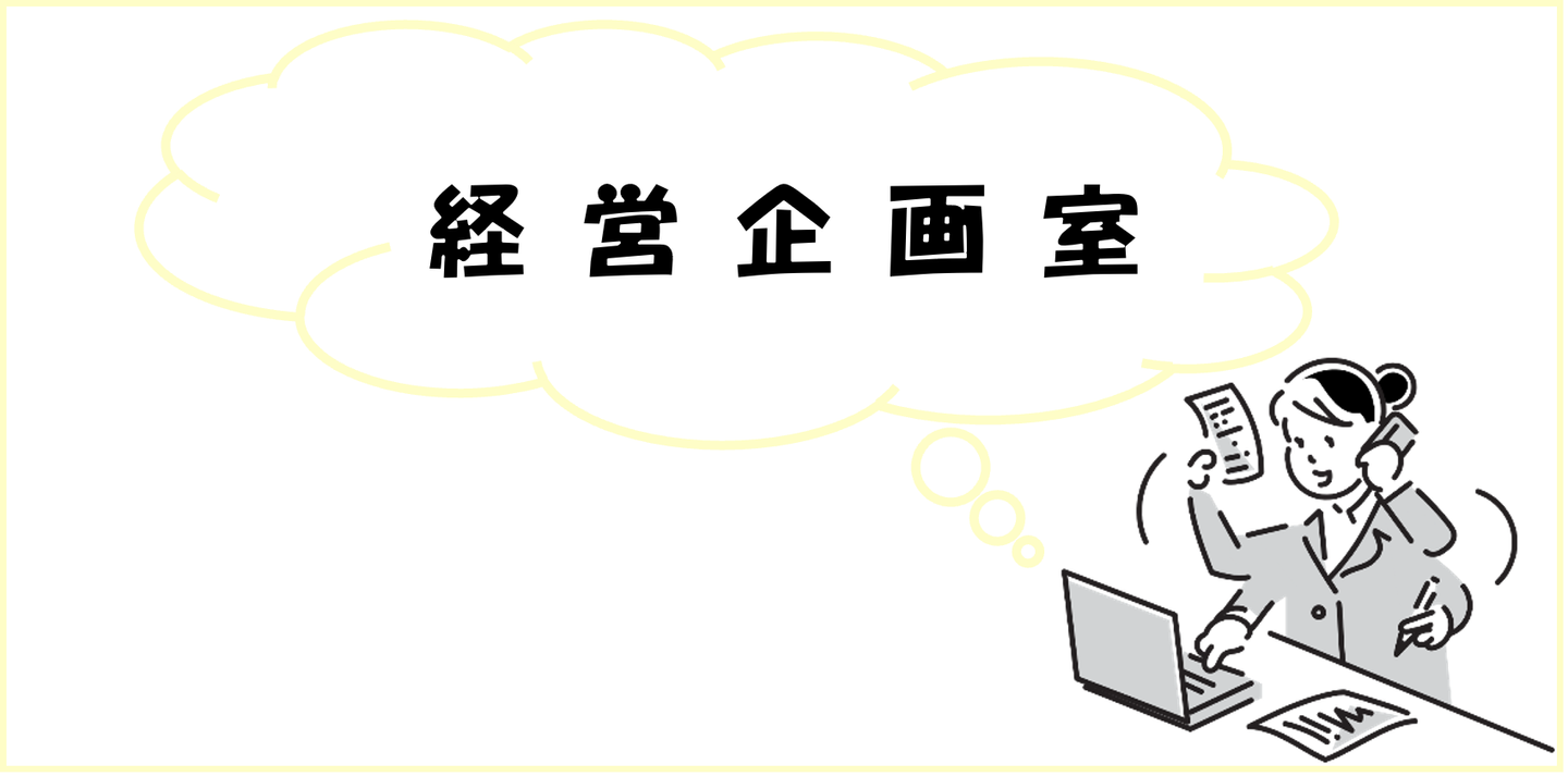 経営企画室とは、一言でいうと「他の部署がやらない事全部をやっている部署」です。