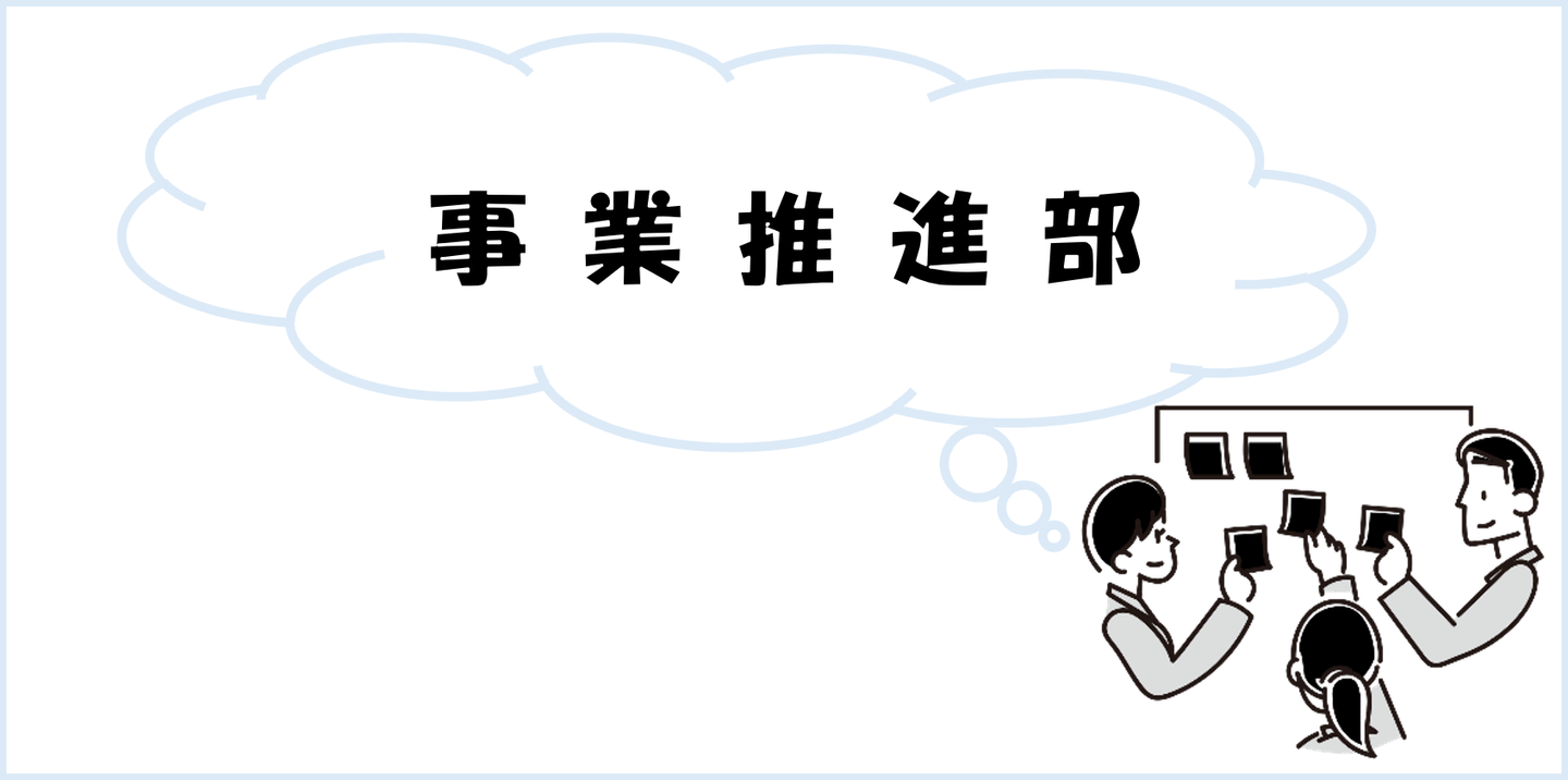 弊社の事業推進部の業務内容は人によって様々ですが、ざっくりいうと「事業やプロジェクトを推進し、実行する部署」になります。