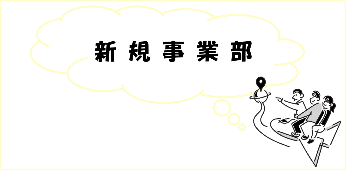 新規事業部とは既存事業と似た内容にならないよう、新しい市場へ挑戦する部署になります。
