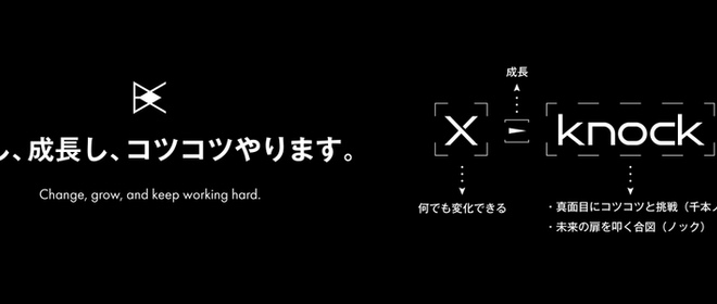 X-knockは成長をしたいと思っている人や会社をマーケティングの力で本気でサポートします。 「私たちならもっとできるのに」 「もっと自分たちの価値を発揮したい」 「競合に負けない強みを見つけたい」 自社の強みや独自の価値をわかってない、気づけていない、理解できていない方に向けて、本質的なあなたの価値を見つけ、磨きあげます。 そして、見つけた価値をマーケティングの力で新しい価値を作り、社会へ解き放ちます。