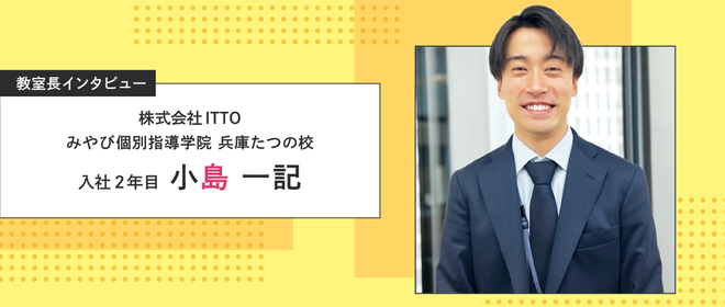 株式会社ITTOは、「ITTO個別指導学院」「みやび個別指導学院」「がんばる学園・TOPS」「すみれ個別指導学院」など、全国に1,200校舎以上を展開する個別指導塾の本部直轄校(約180校)を管理運営する会社です。創業以来、新たな発想で業界をリードし続け、「業界No.1の個別指導塾」を目指して、サービスと教育の質の向上に取り組んでいます。今回は、代表取締役の笠原社長にインタビューを実施。株式会社ITTOが描く未来像や、これからの展望について伺いました。【プロフィール】笠原 翠:代表取締役社長。学生時代に「ITTO個別指導学院」で講師を務め、2011年に自分未来きょういくへ新卒入社。教室長...