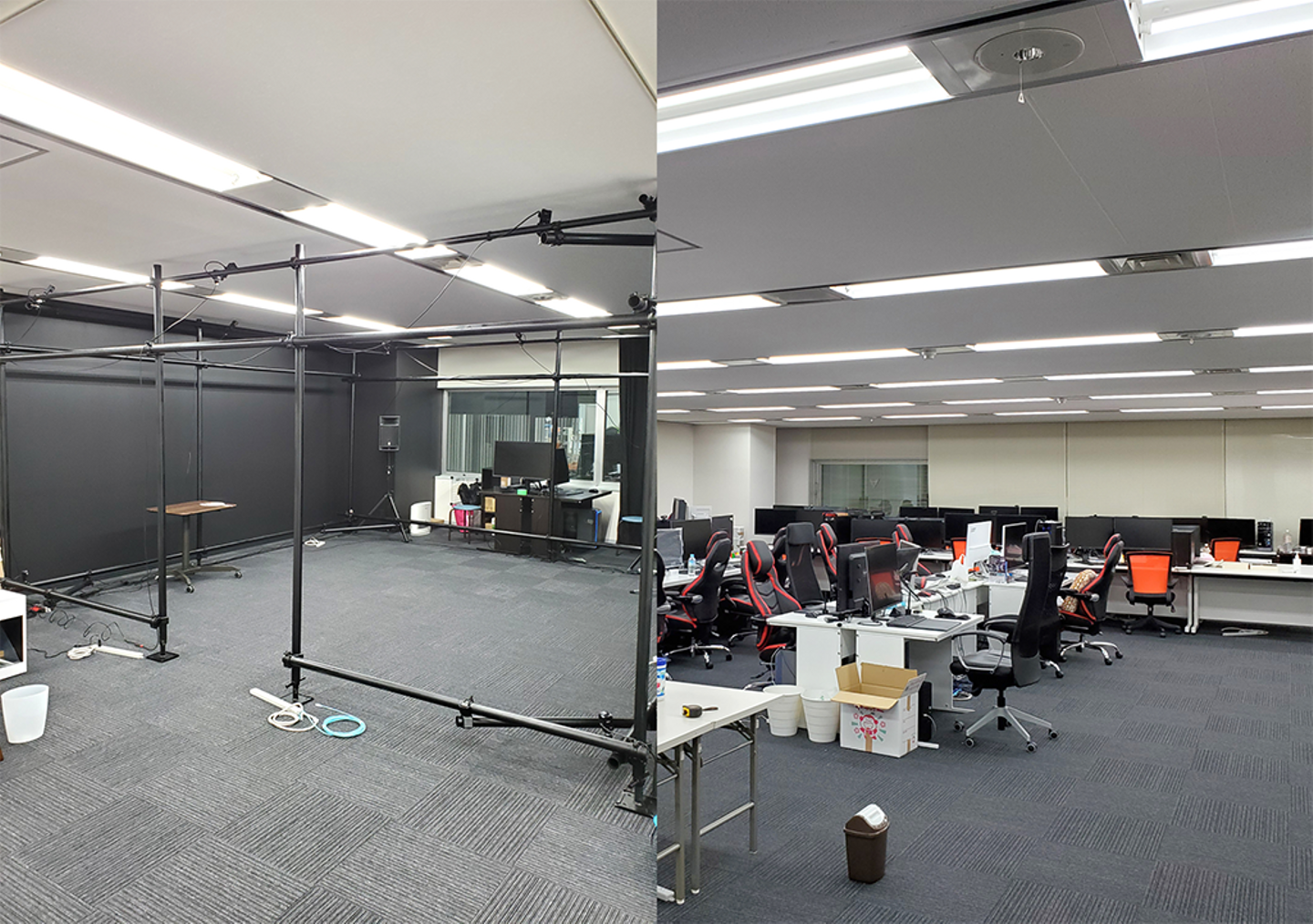 東京オフィスの様子 ※右が執務スペース、左がモーションキャプチャールーム