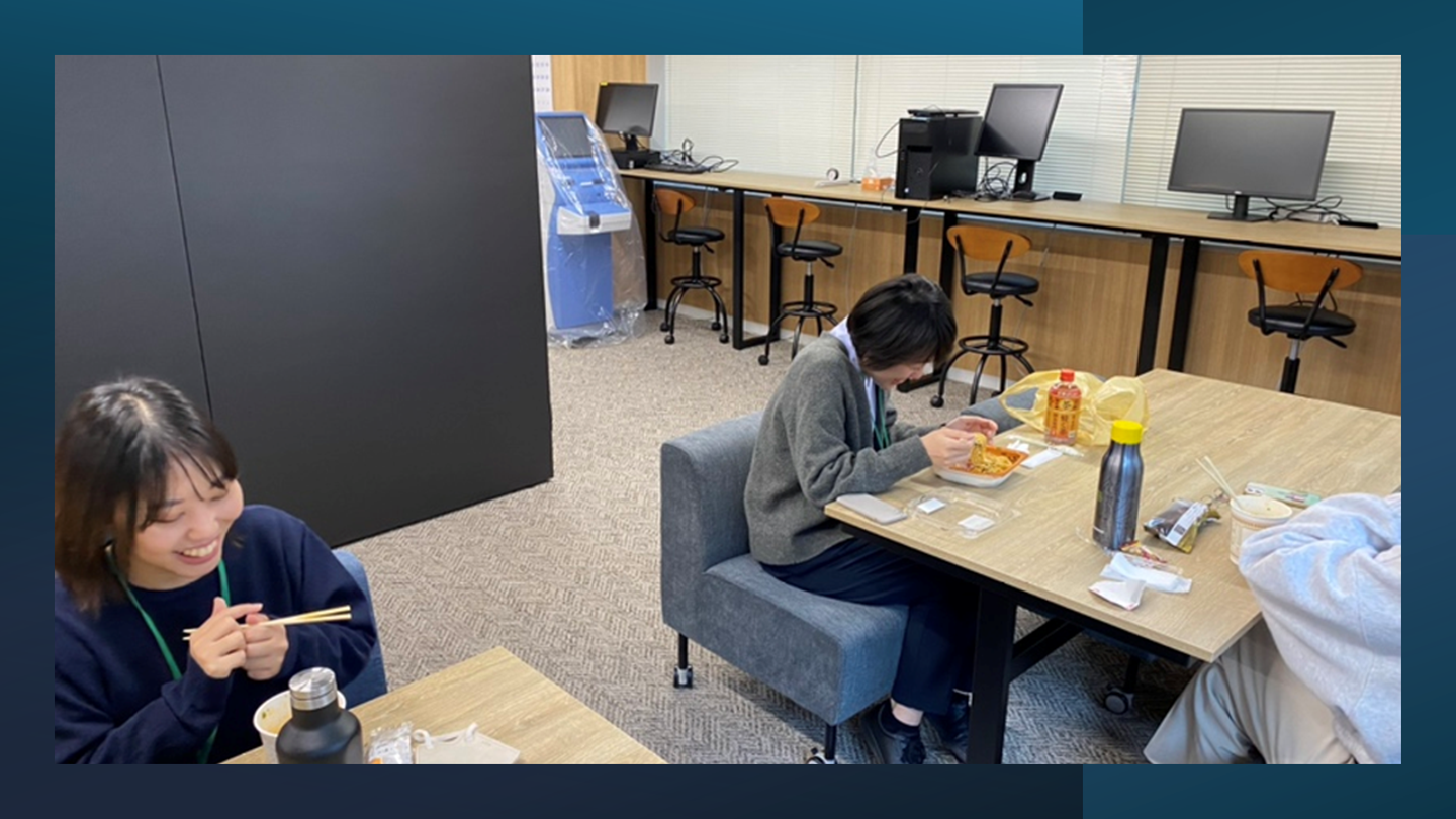 休憩スペースが好きです。メンバーの出入りがあって、そこでちょこっとした会話とかができるので。